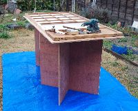家人から「猫の爪とぎでボロボロになった建具を修繕しろ」と言われ、まずは作業台制作から