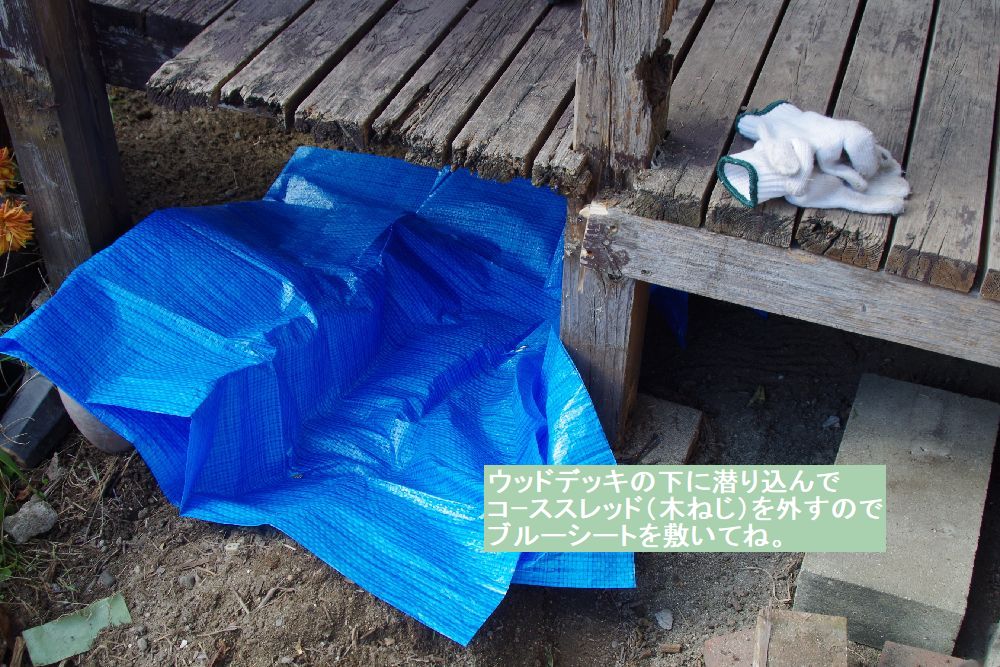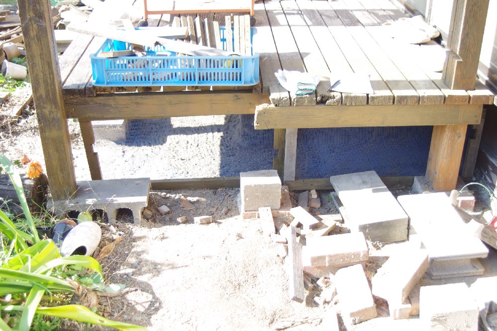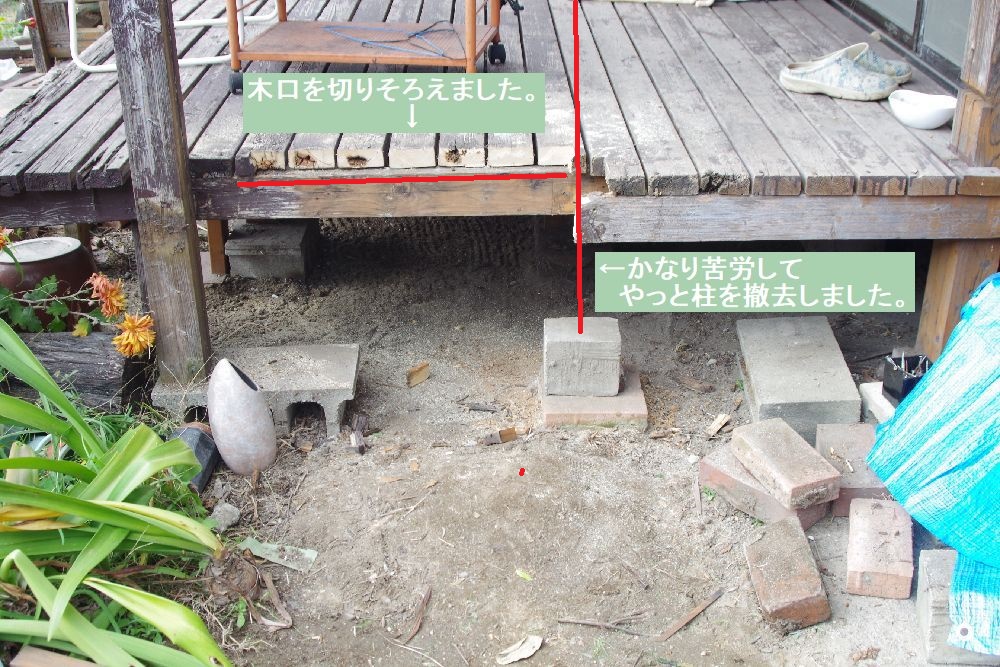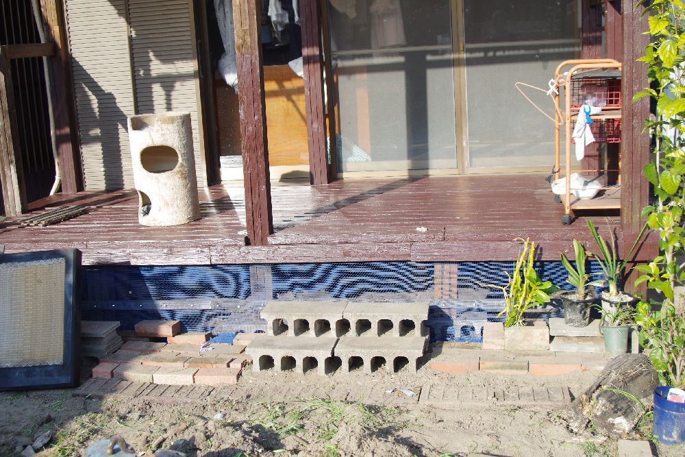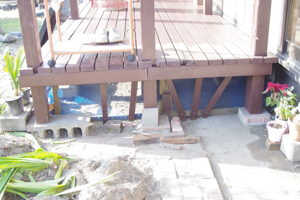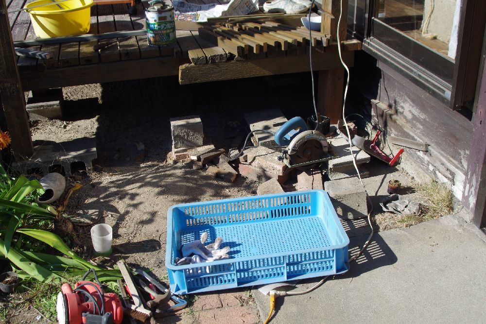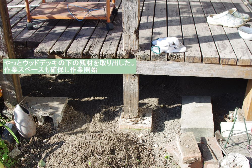 デッキ下に置いてあった木材を撤去中