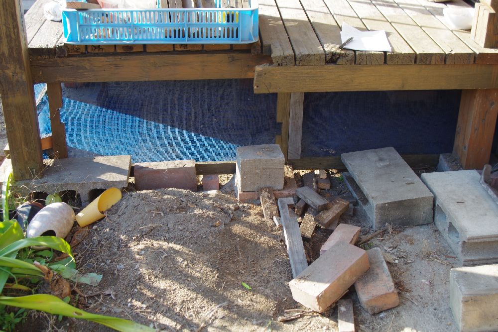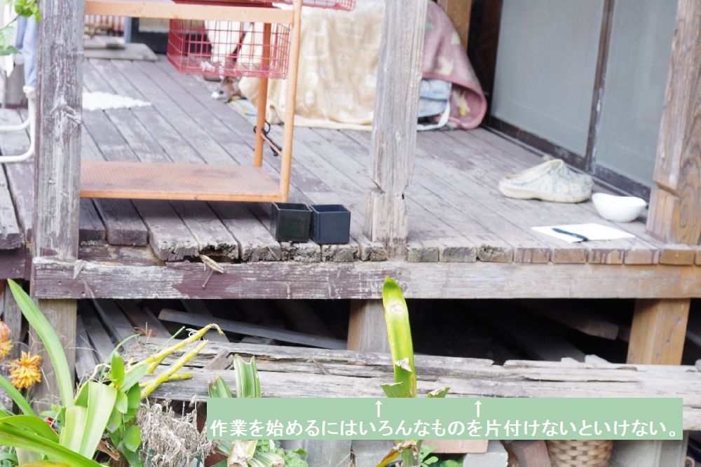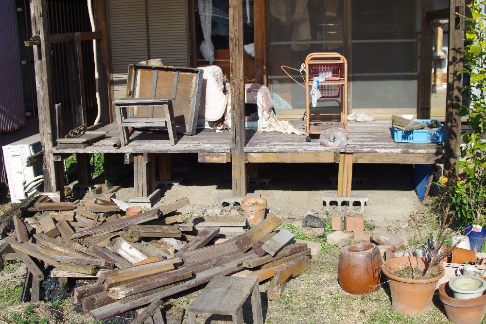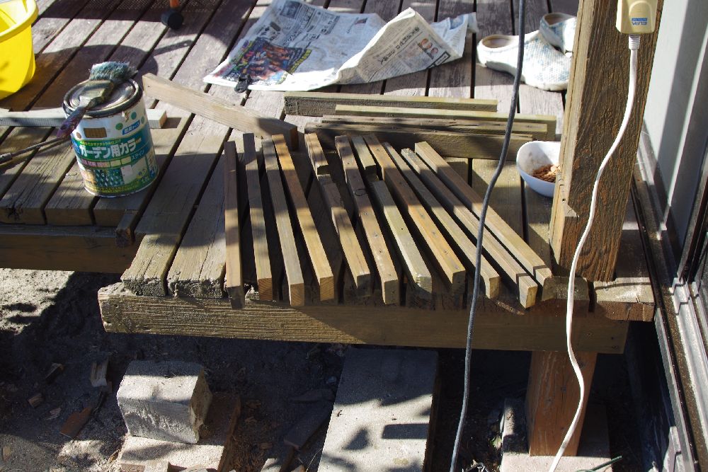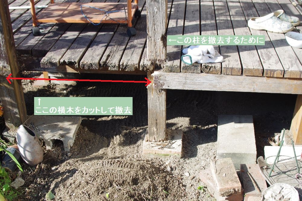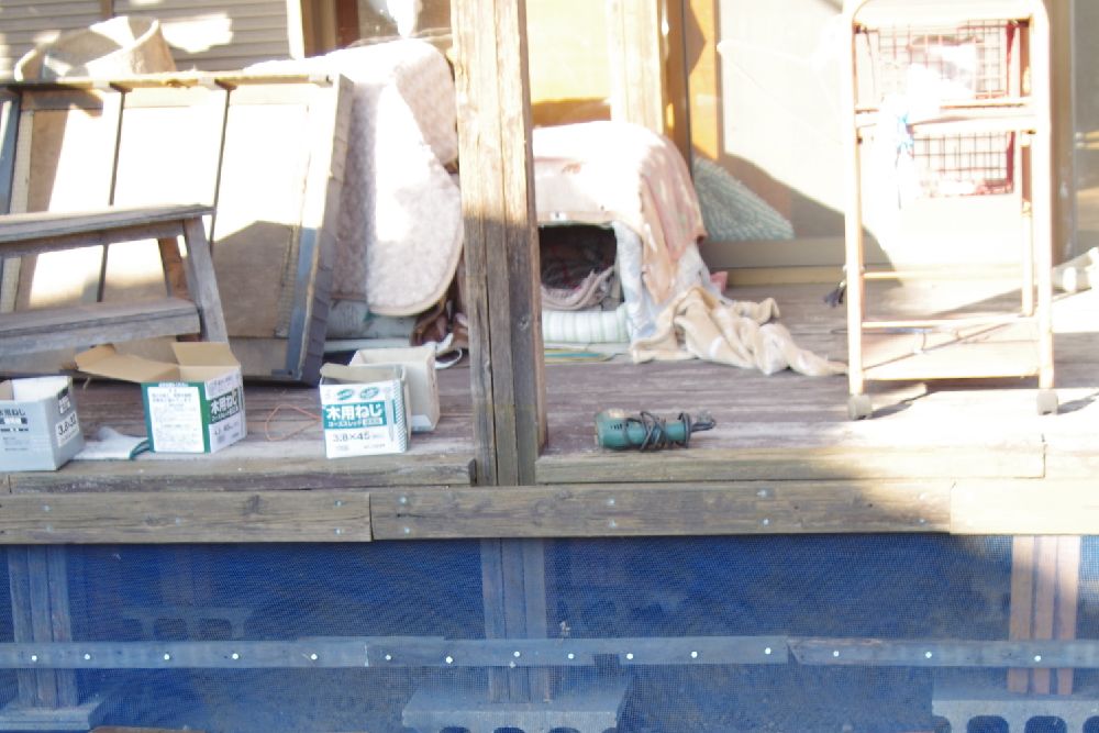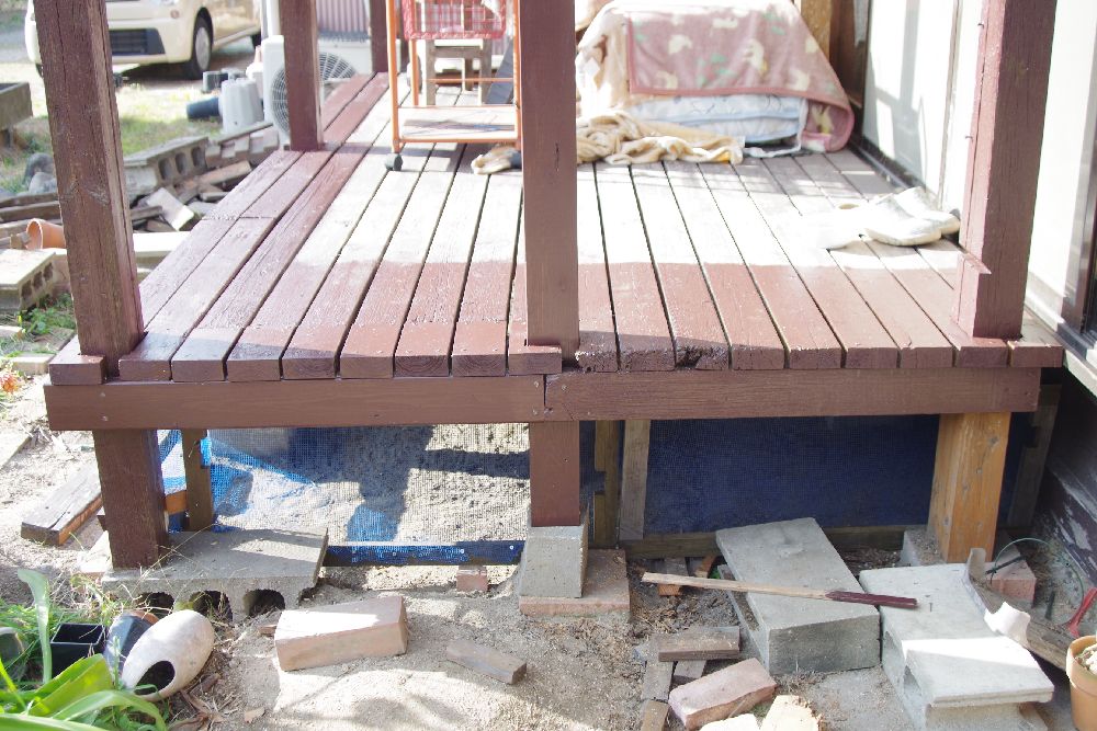 デッキ下に置いてあった木材を撤去中