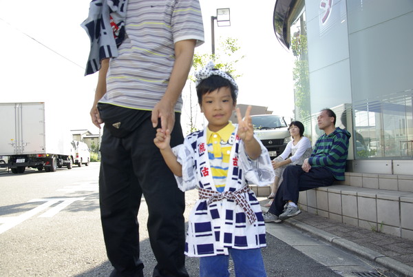 太田川駅 東口 ロータリー入り口での荒古組のどんでんを見に来ている若衆予備軍です。