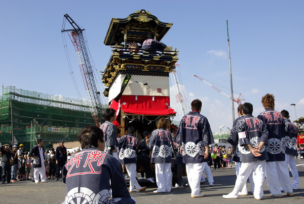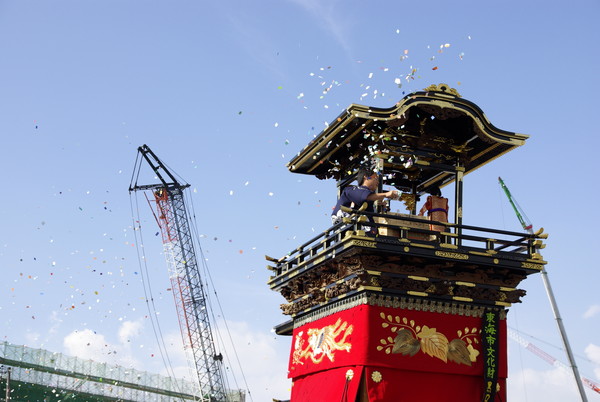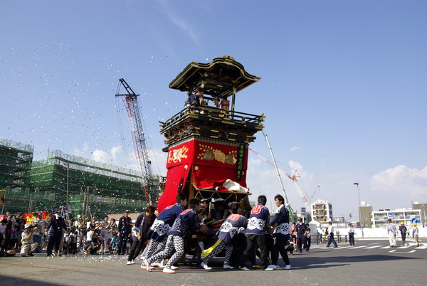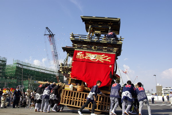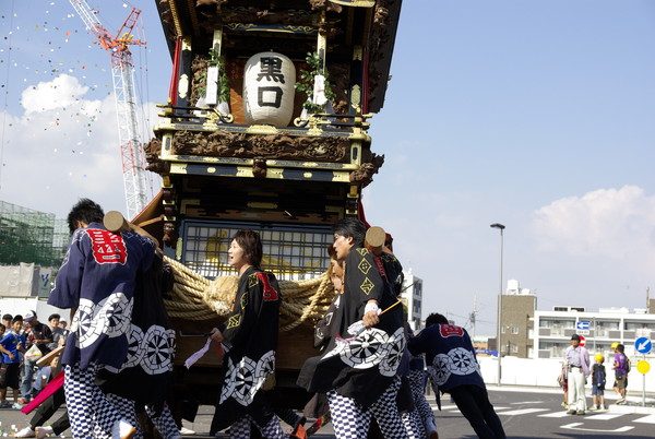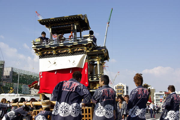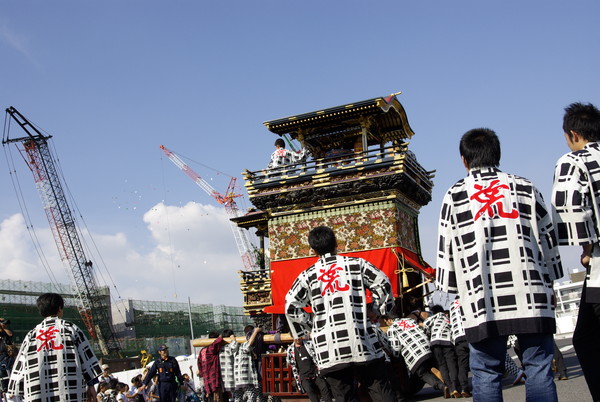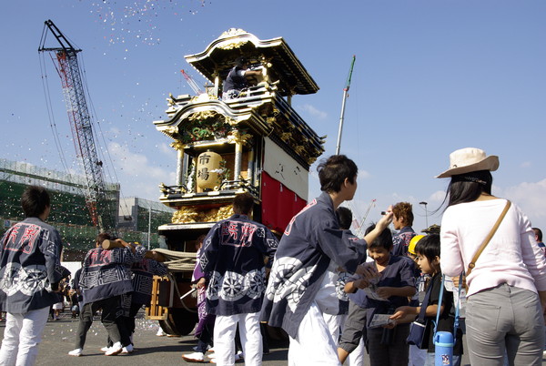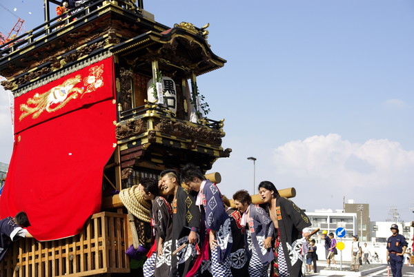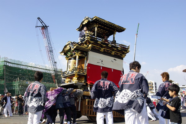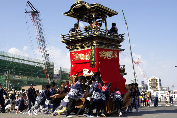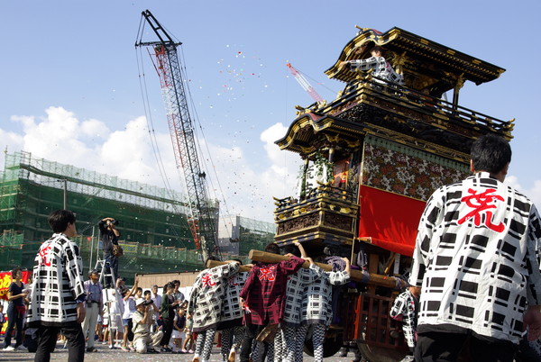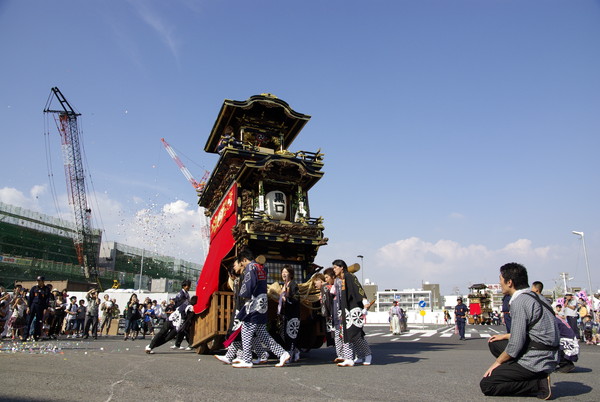 西日の当たっている荒古の山車を激写しようとカメラマンも集まる。