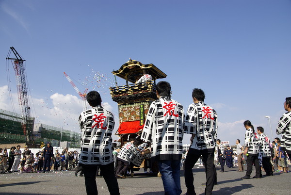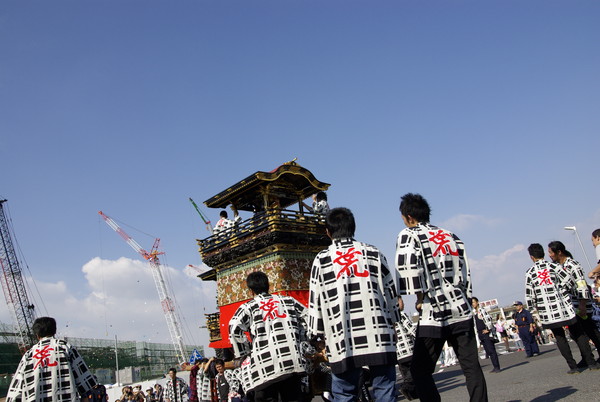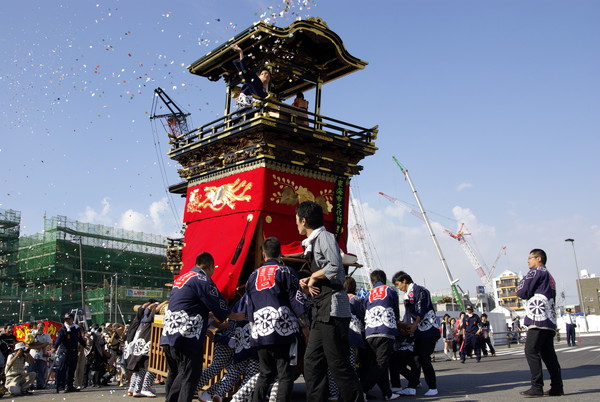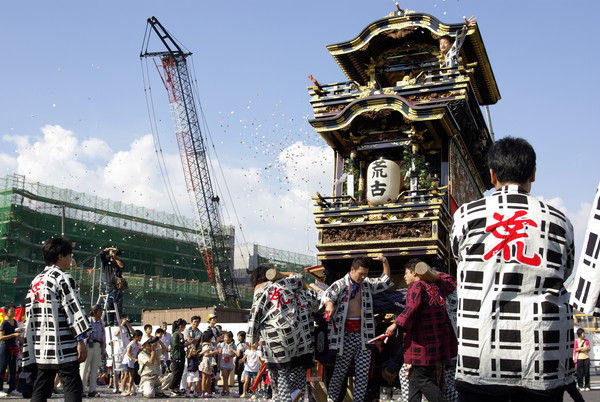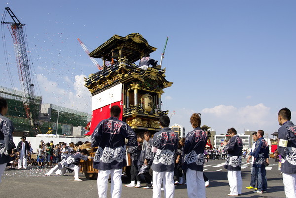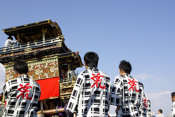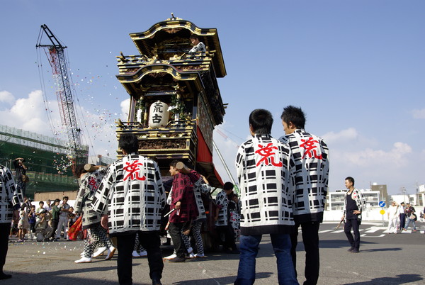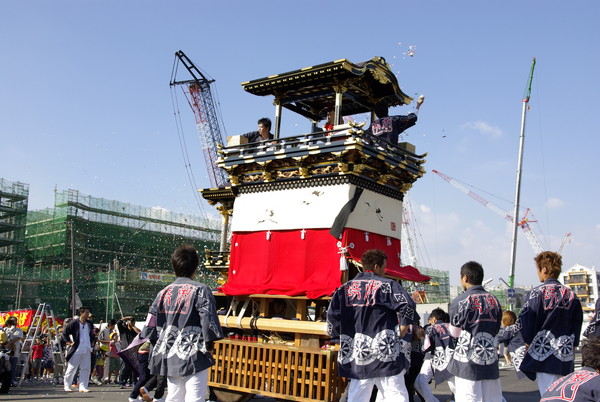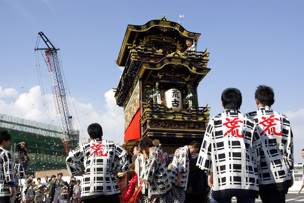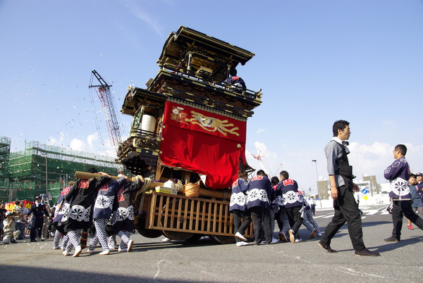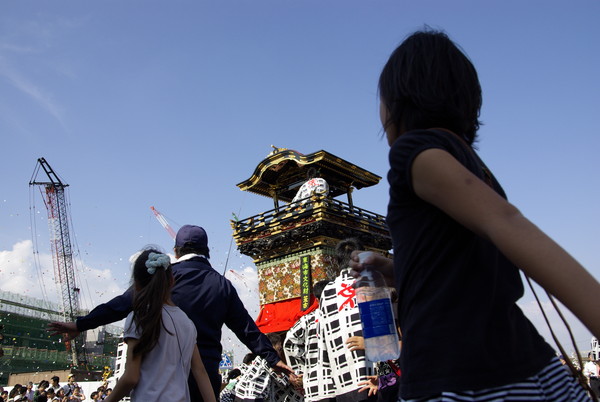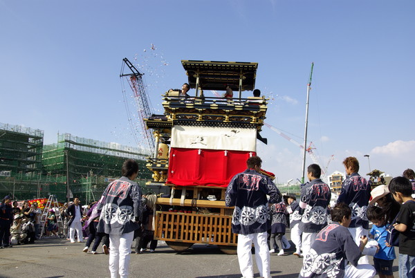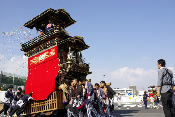 西日の当たっている荒古の山車を激写しようとカメラマンも集まる。