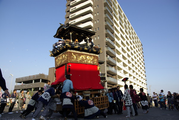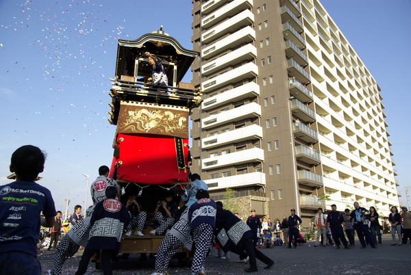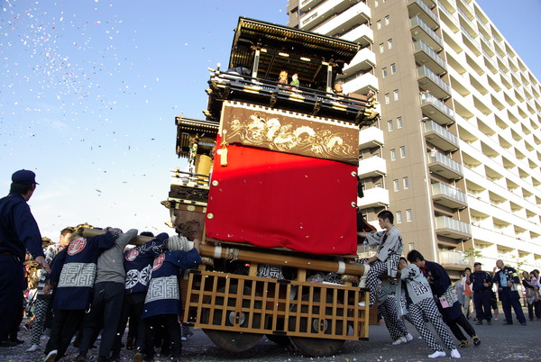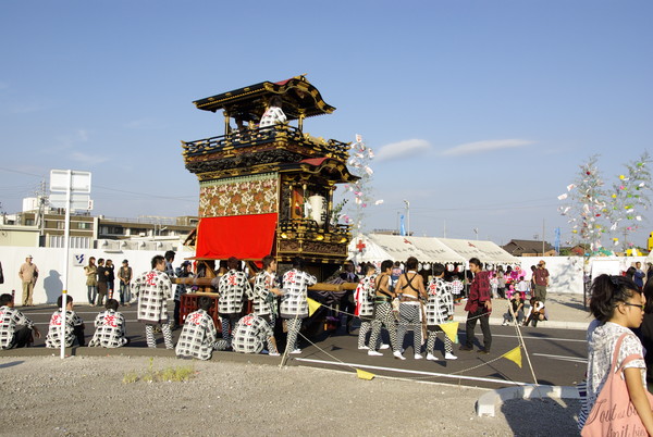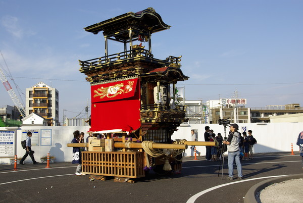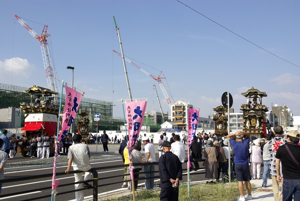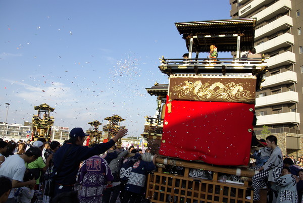 各脇のどんでんが終わるとロータリー内に山車を並べます。 ロータリーを囲むように並べたんですね。