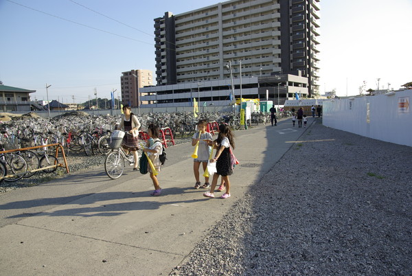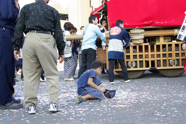 山車が降りると 子供たちがビラを集めに駆け寄ってきます。