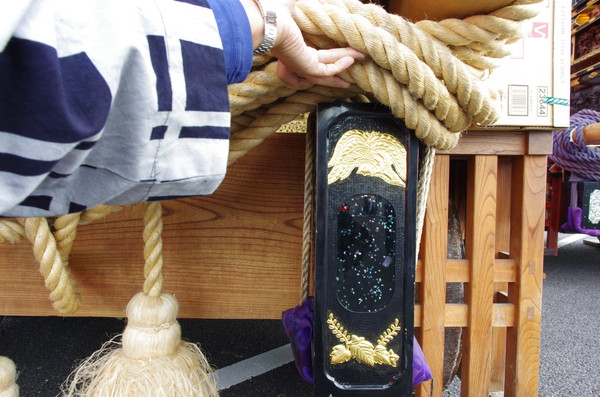 螺鈿(らでん)細工の装飾が施され、金具で怪我をしないよう布団が巻かれている。