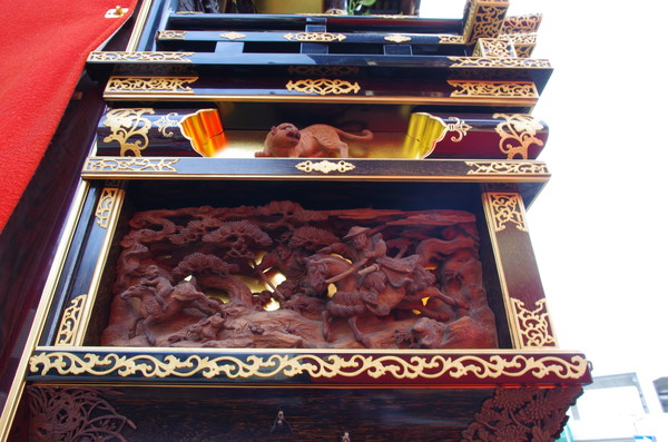 壇箱右側面にも狩をする殿様。その上には白虎。