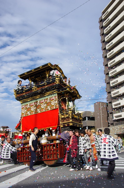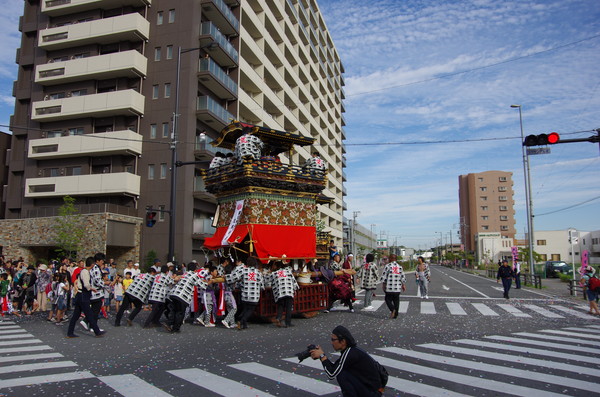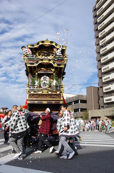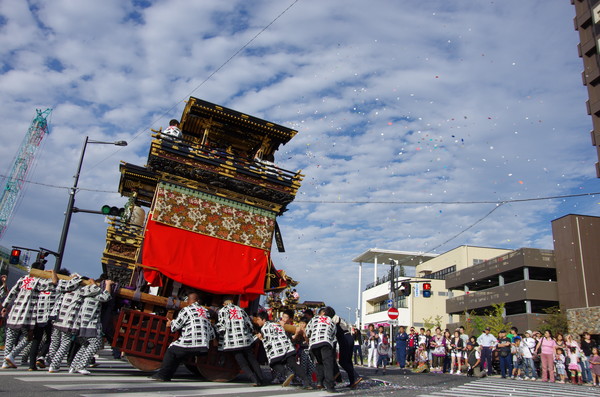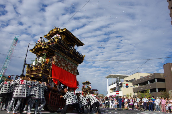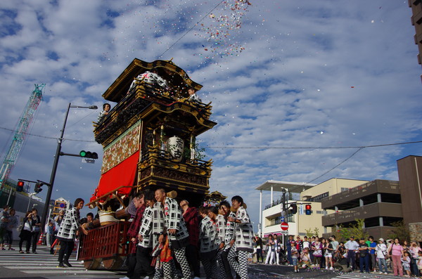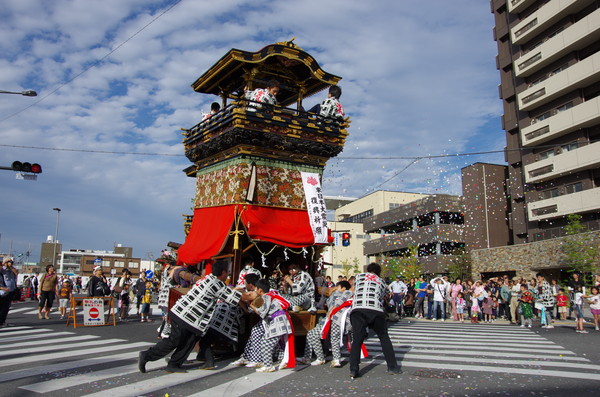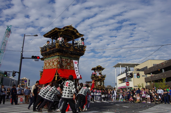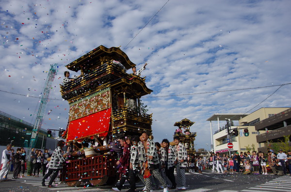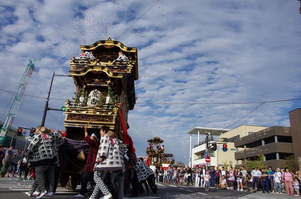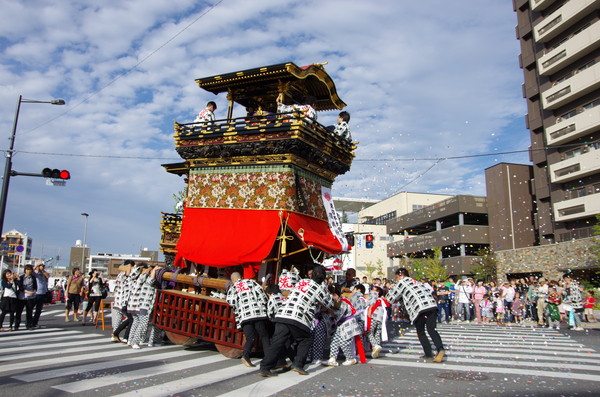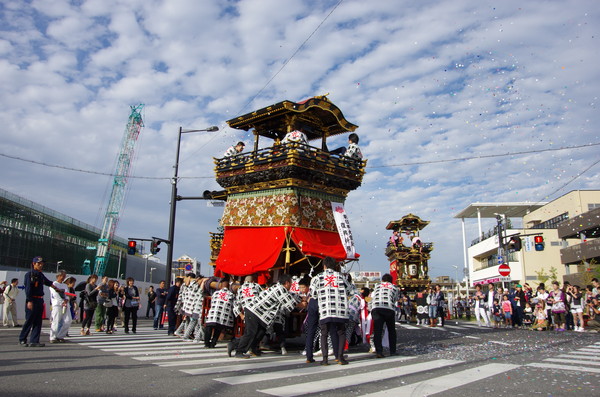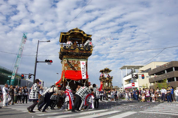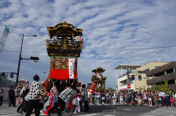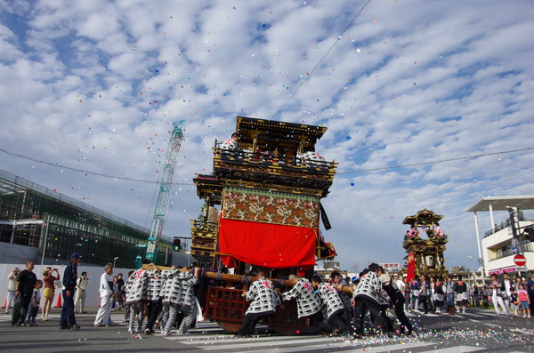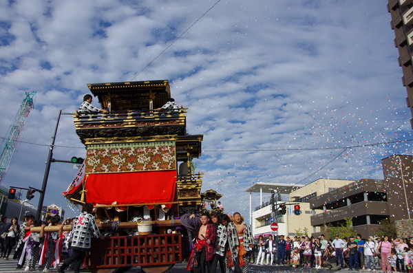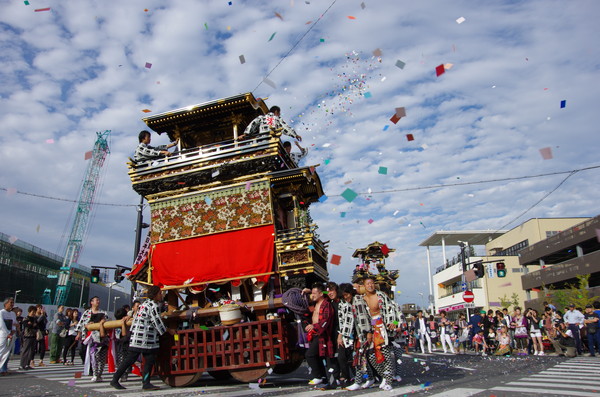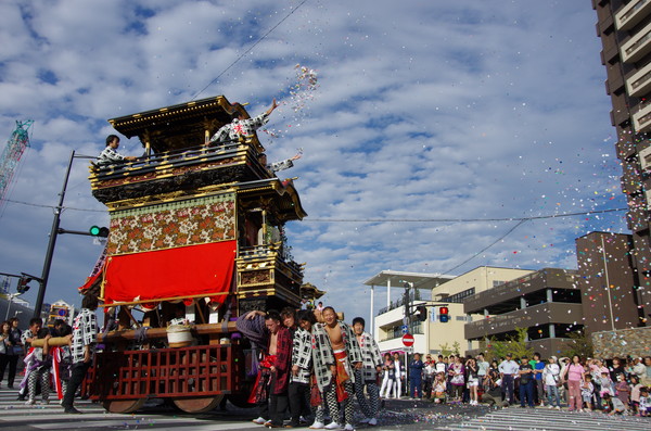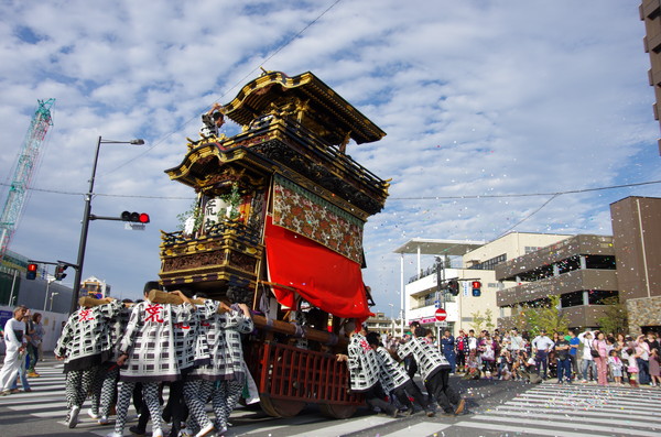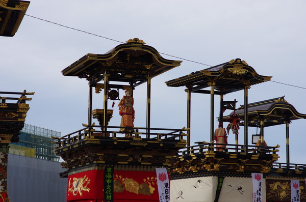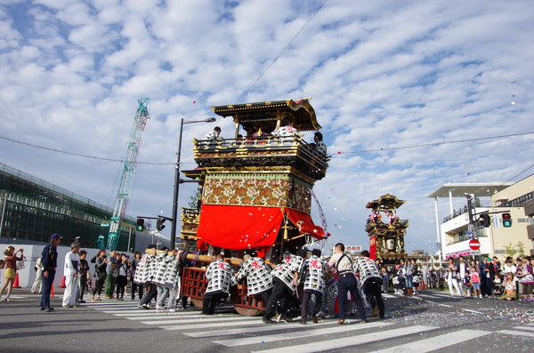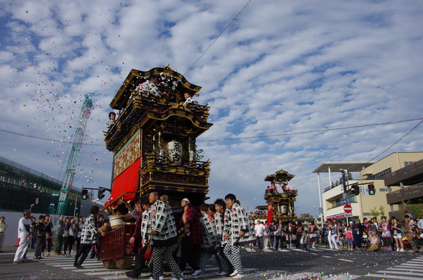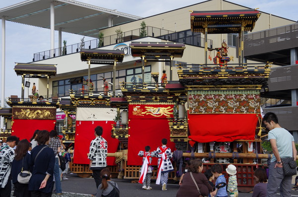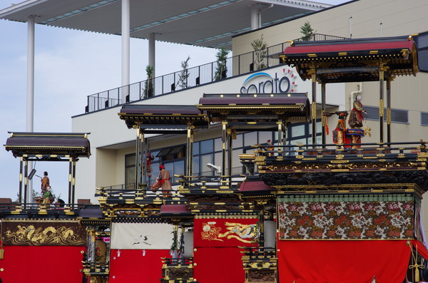 Soratoとバックに綺麗に4台並ぶ山車。