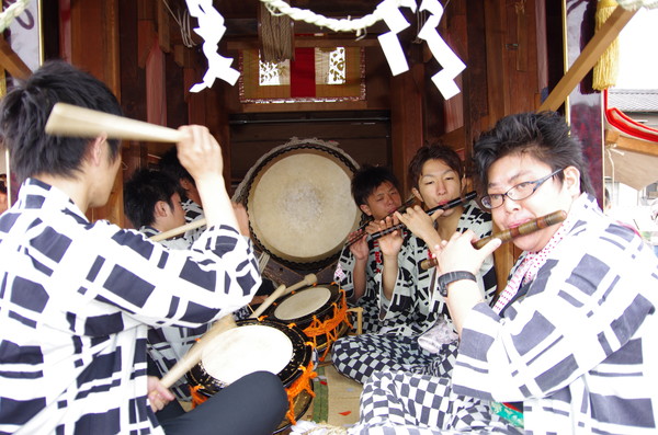 荒古組 お囃子のようす。 しなるバチ。