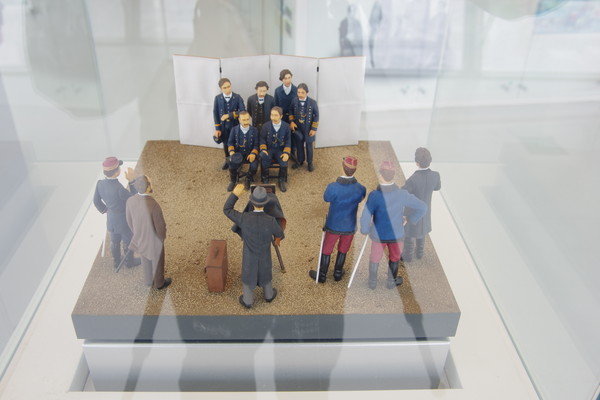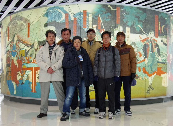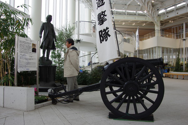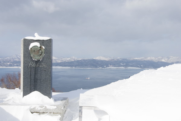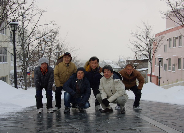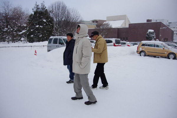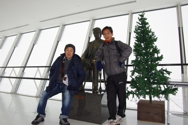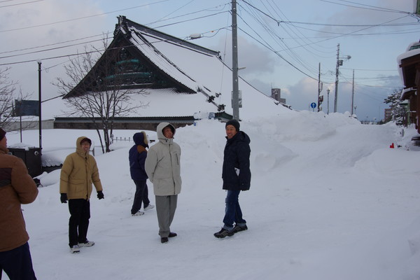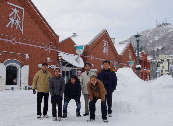 昨日猛吹雪で取れなかった記念写真を赤レンガ倉庫前で。