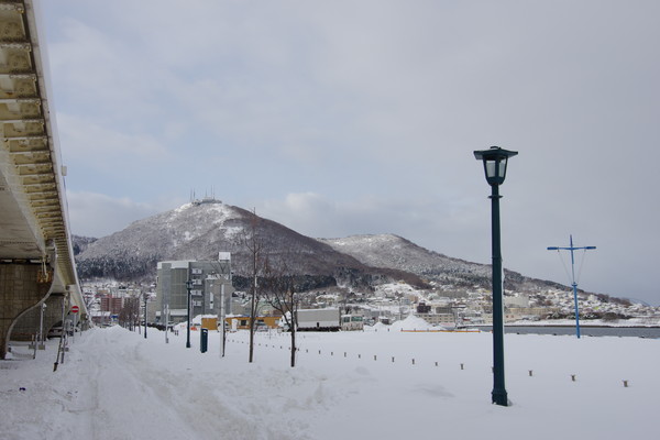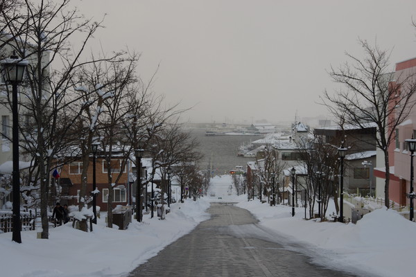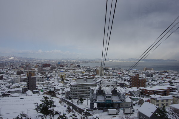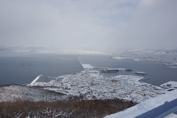 五稜郭タワーの見学を終え、次は坂の上から 港を望む。