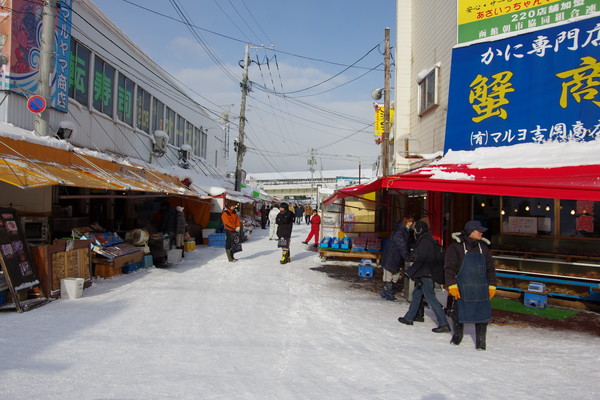 朝食のバイキング後は8:00に出発。 まずはJR函館駅横の朝市へ。
