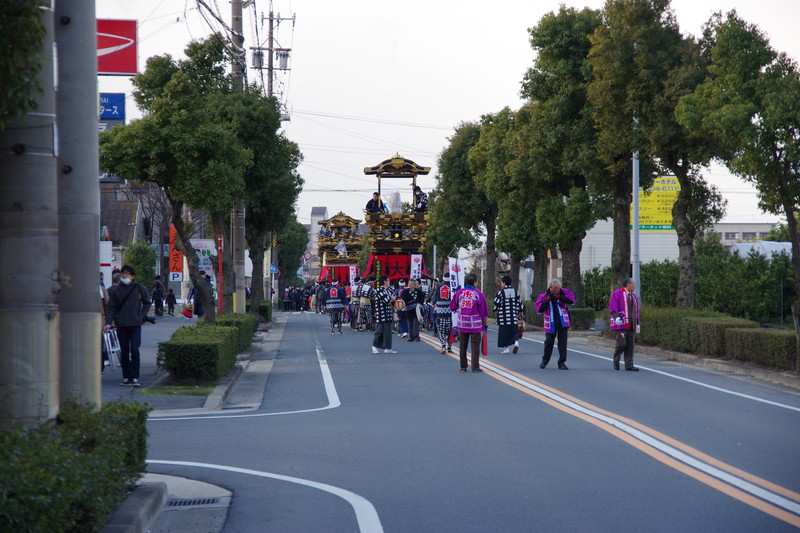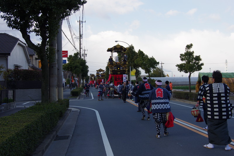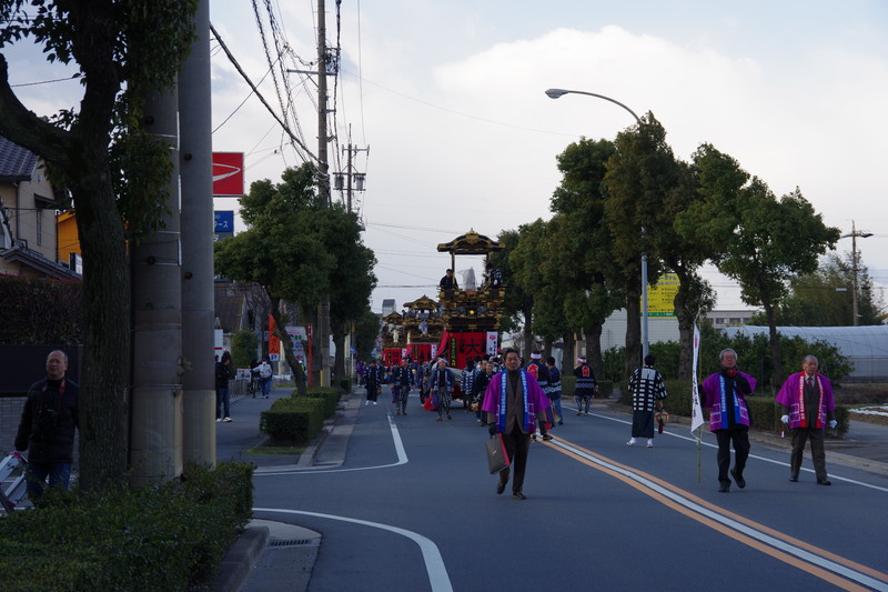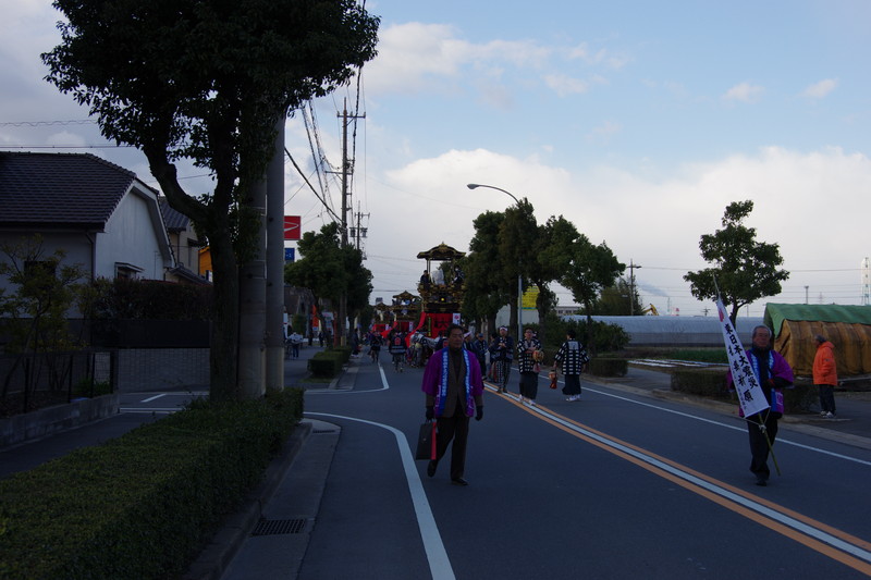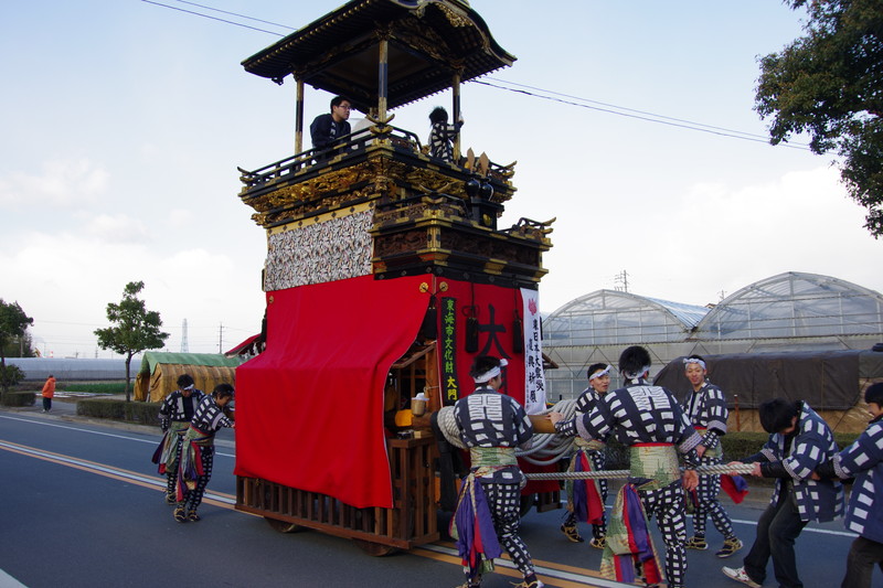 まずは7:15に大宮神社前で我が荒古組の山車を撮影。