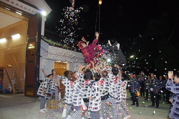 そして、若衆の挨拶を聞くために円陣ができてくる。