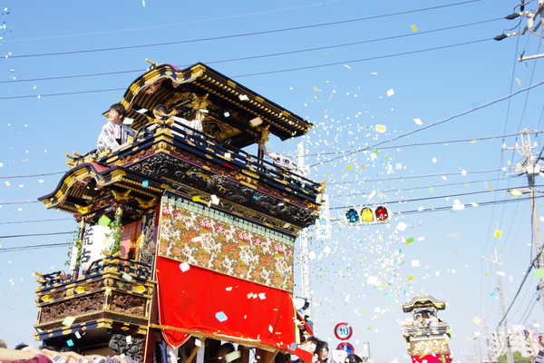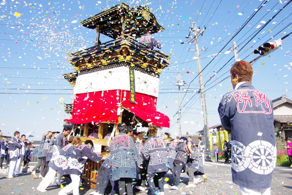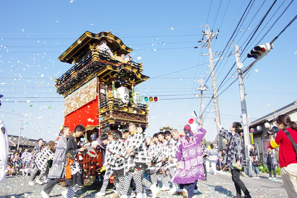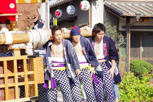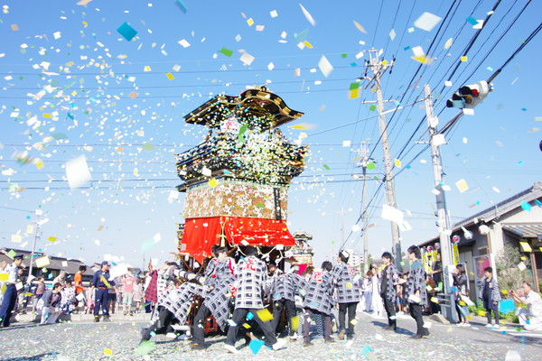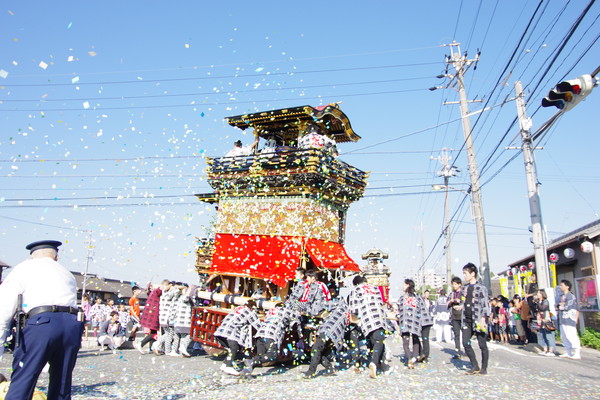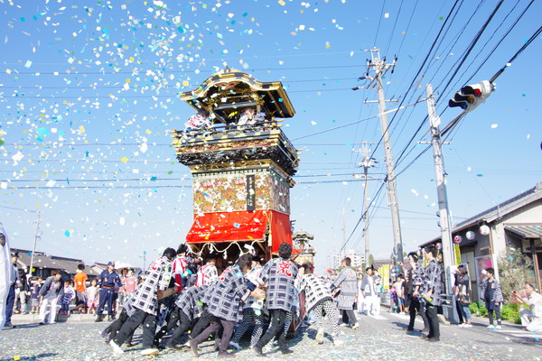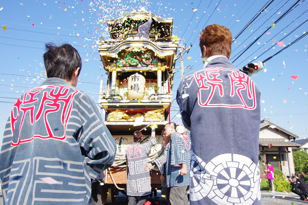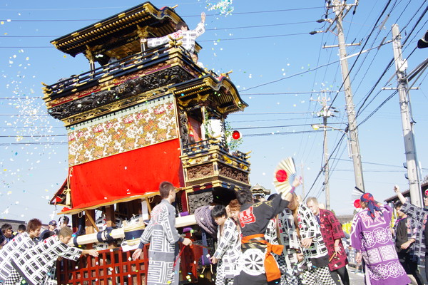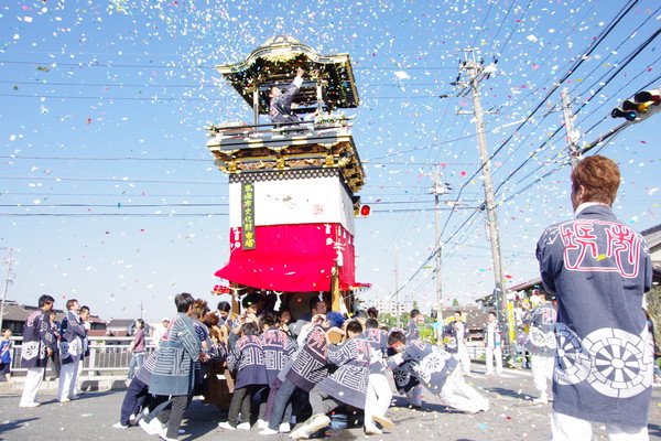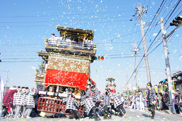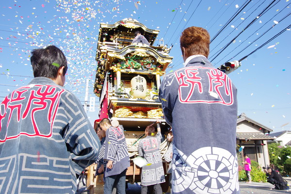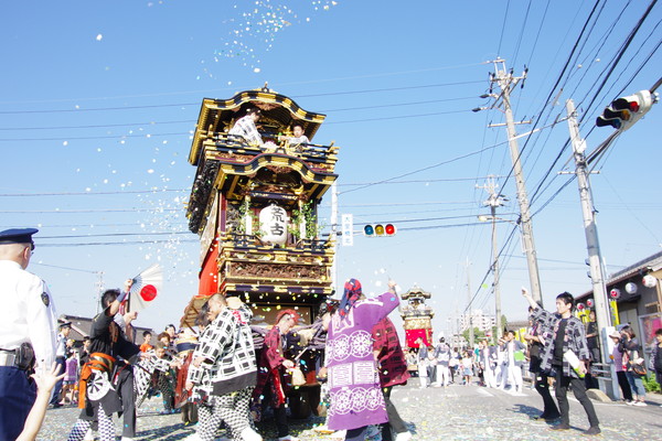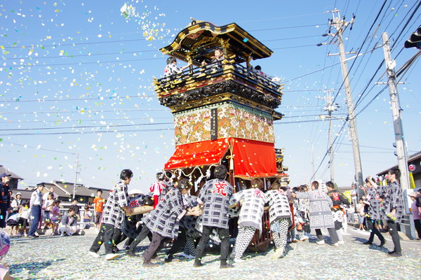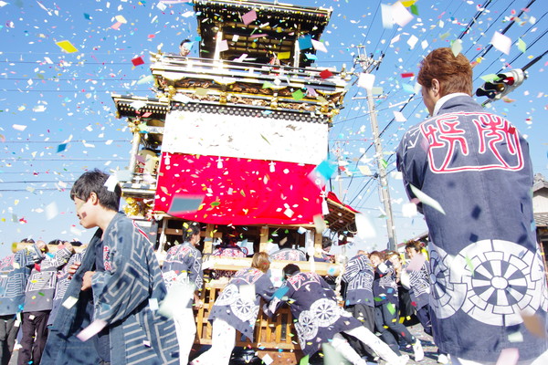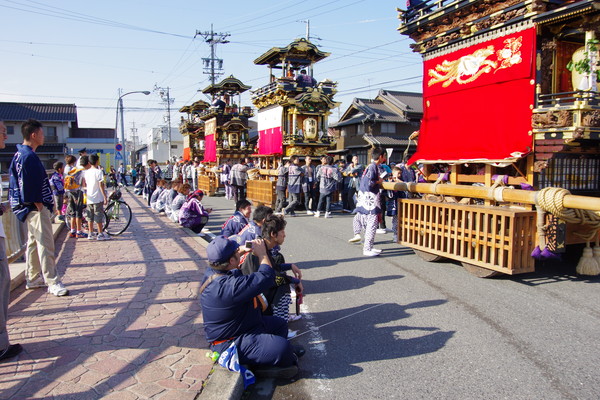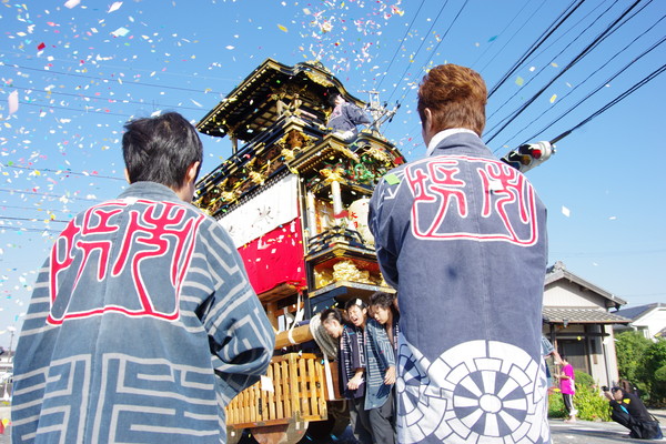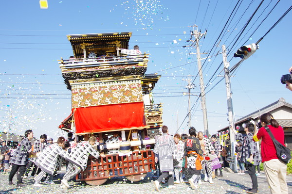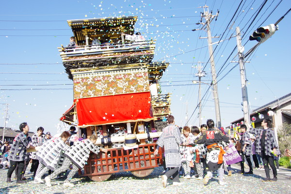 本楽 早朝 荒古の山車が 旧山車蔵の近くを通過して行く。