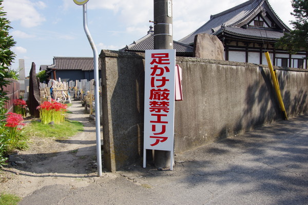 常蓮寺の壁には足をかけてはいけません。 墓地内には彼岸花が咲いていました。