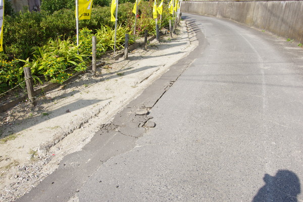 山車はとても重いので アスファルトの薄いところや、端っこは 割れてしまうんですね。