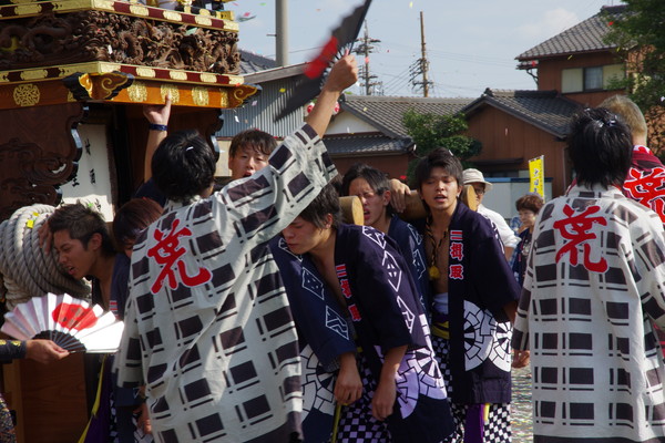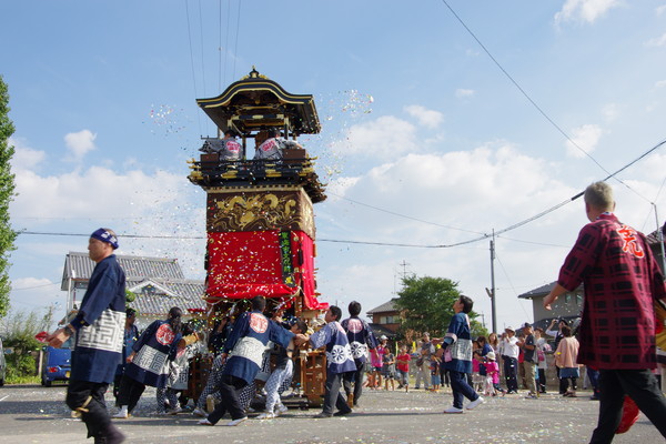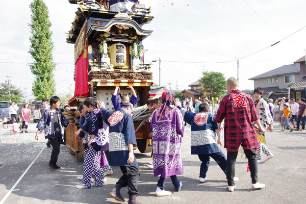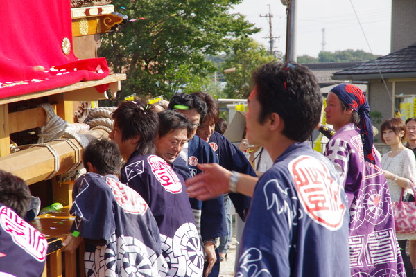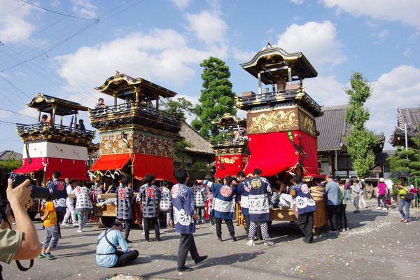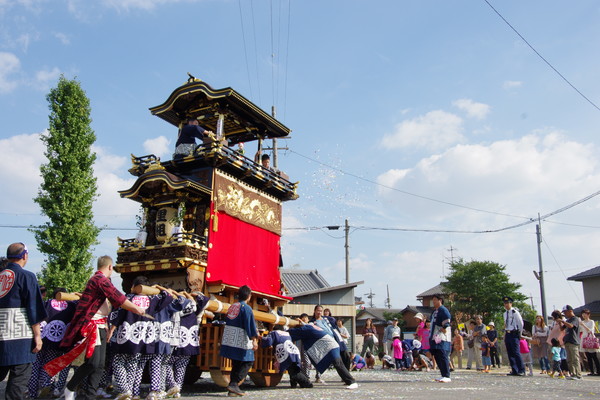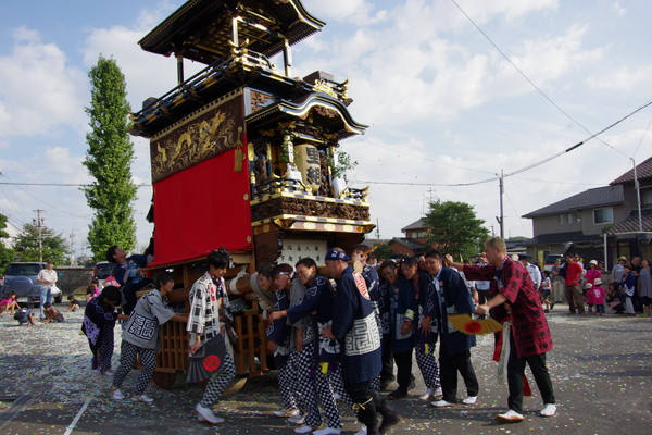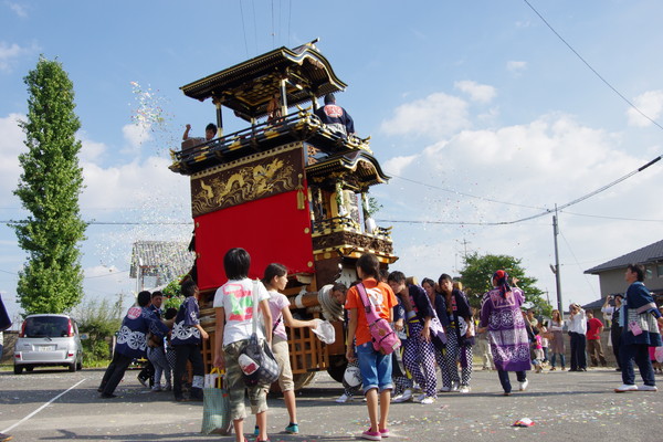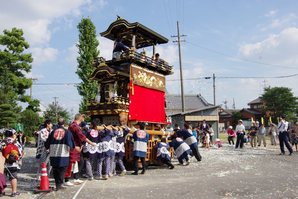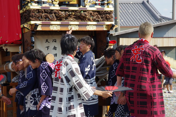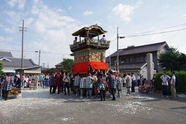 今年はからくり人形は常蓮寺で行う番でした。 すでに終了して屋形も降ろしてあるところです。