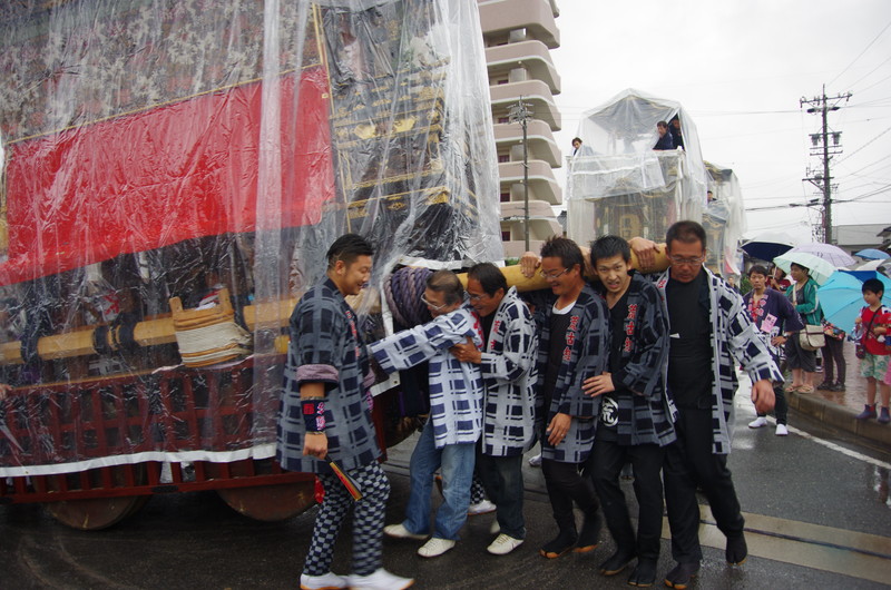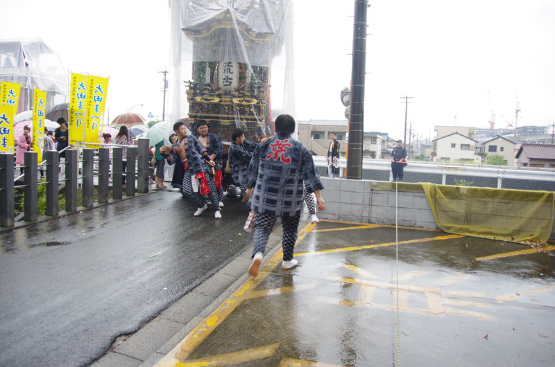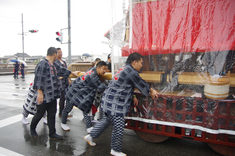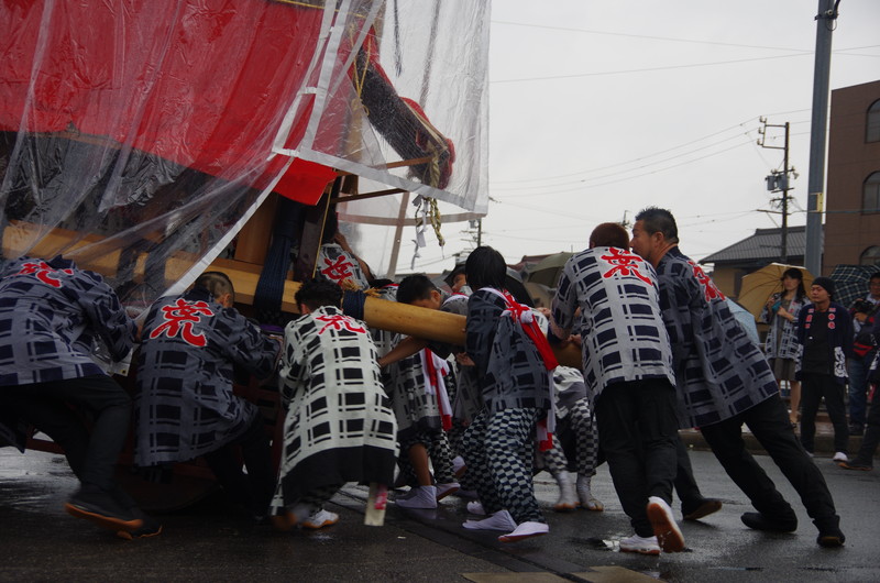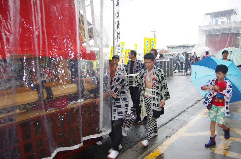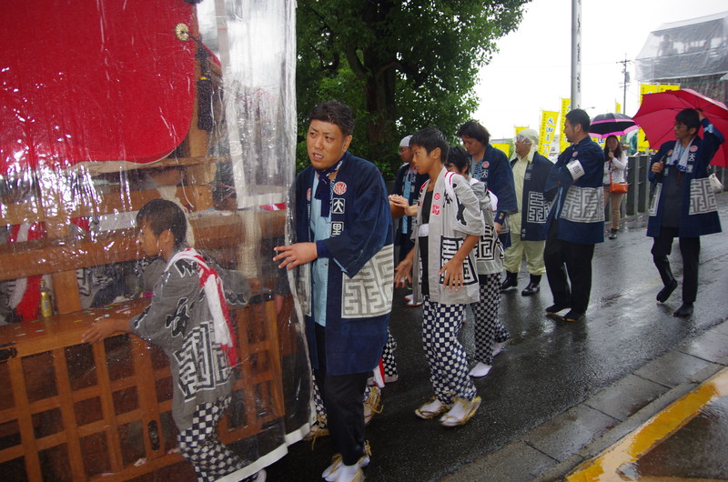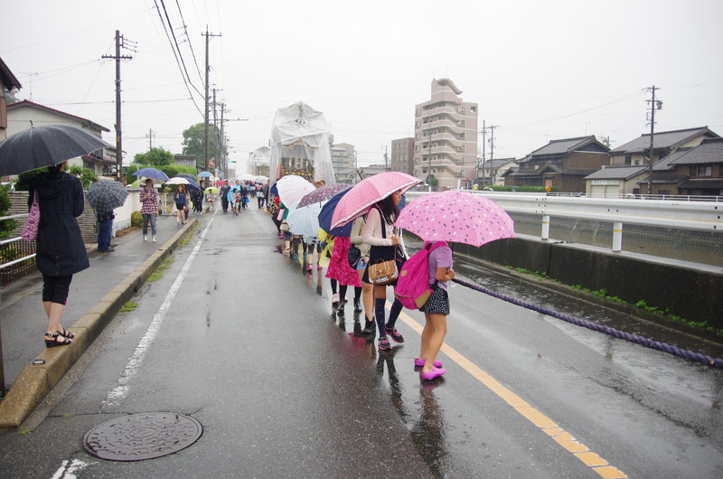 雨が降るのに 傘指しながら 綱を曳いてくれる子供たち。 ありがたいですよ。