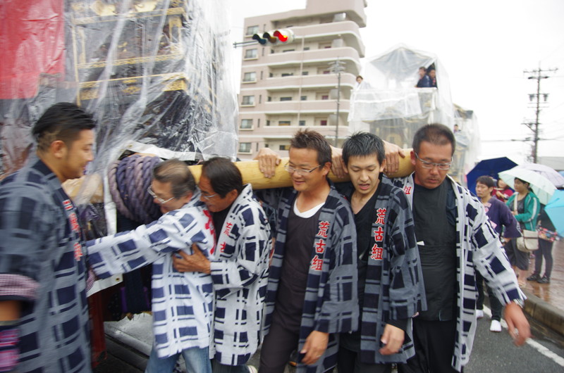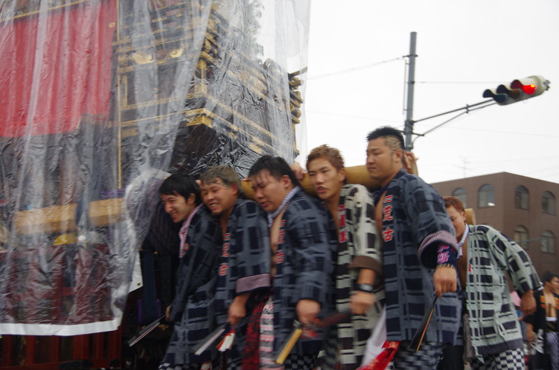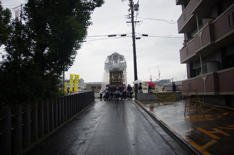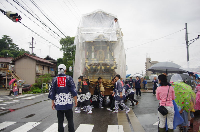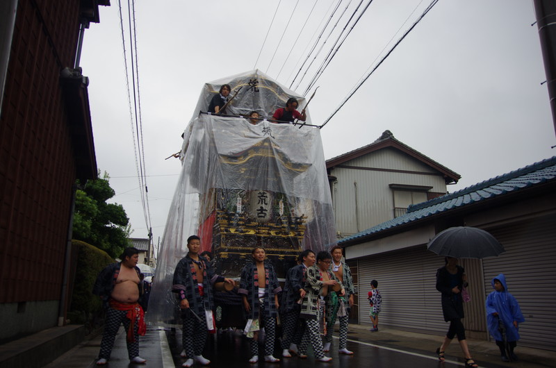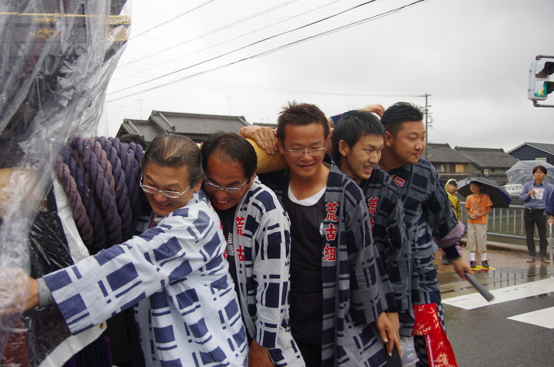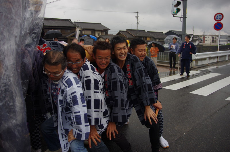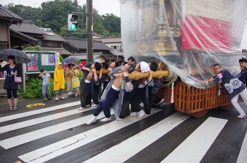 雨が降るのに 傘指しながら 綱を曳いてくれる子供たち。 ありがたいですよ。