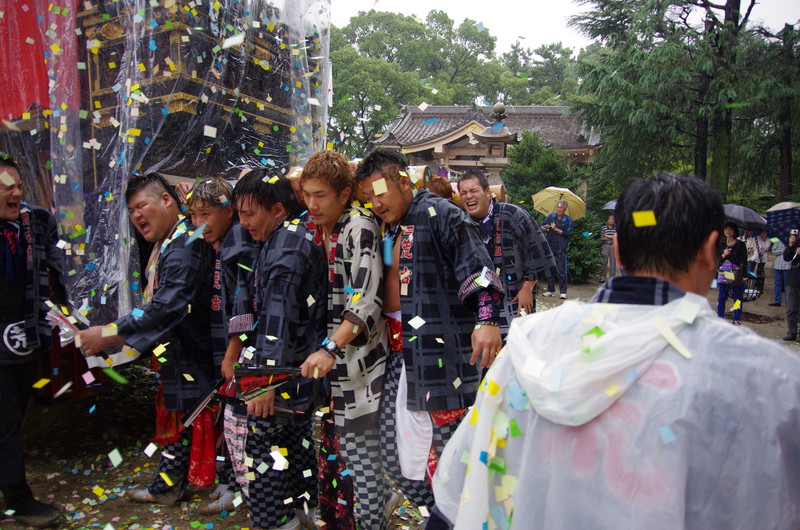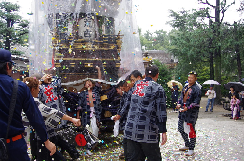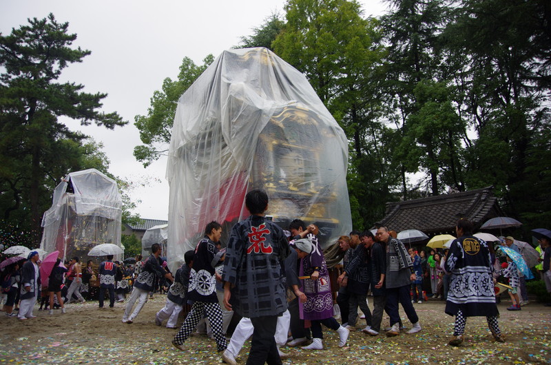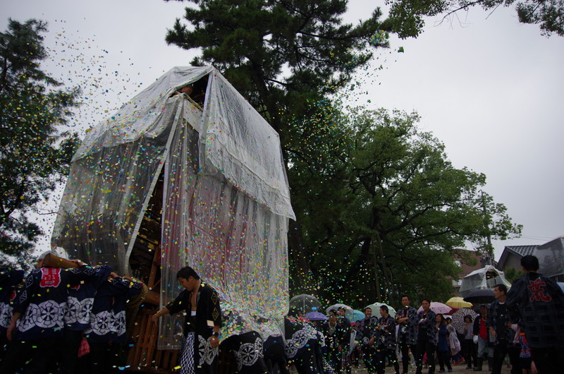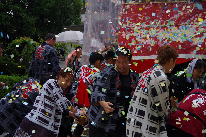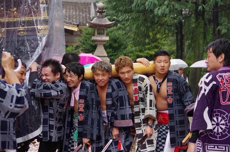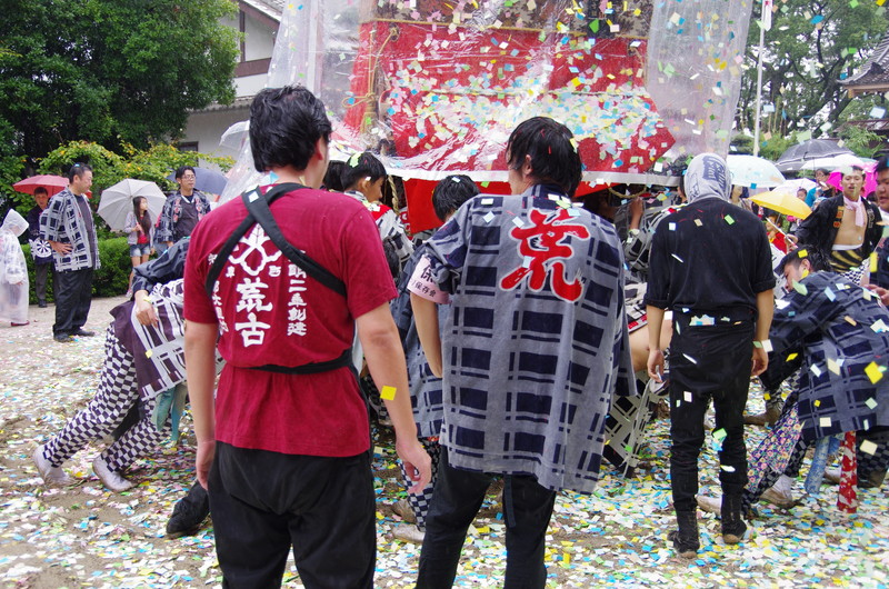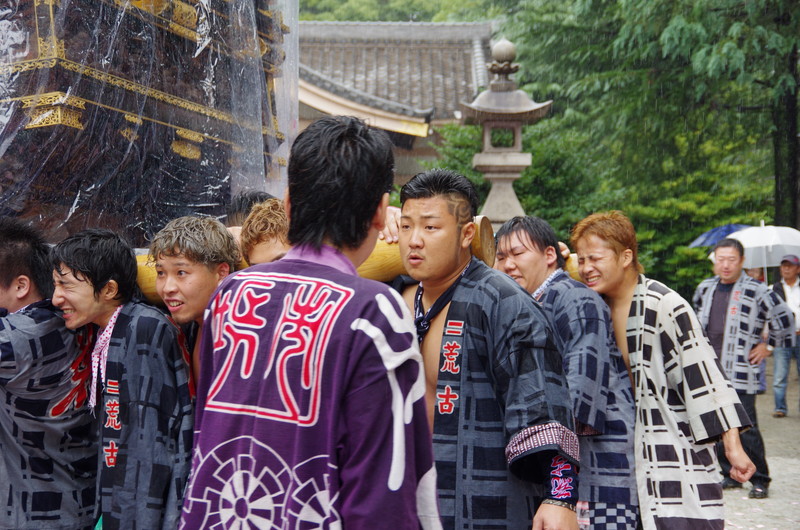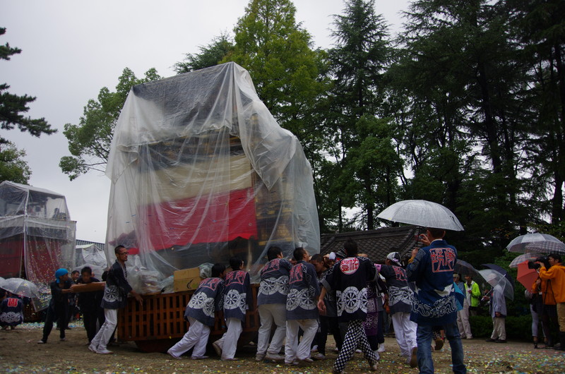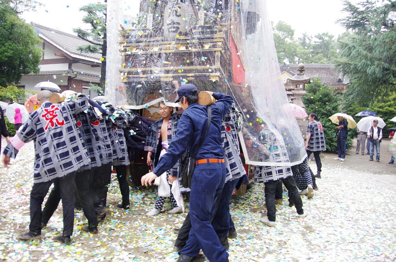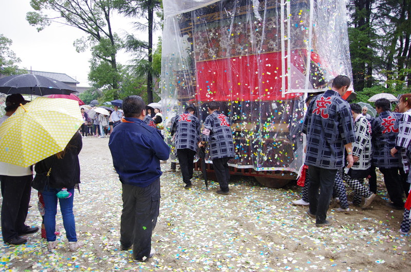 中老さんたちの担ぎ。 雨とビラですごいことに・・。