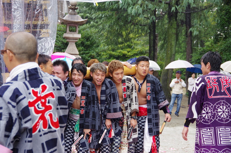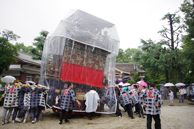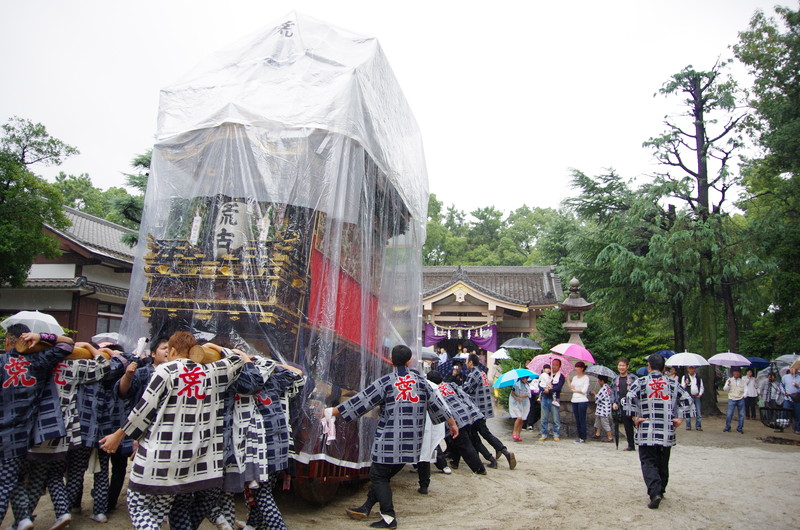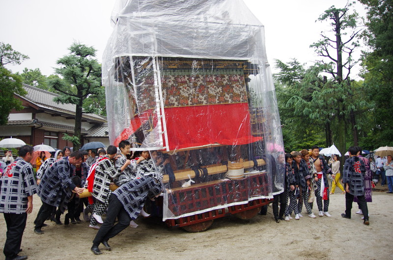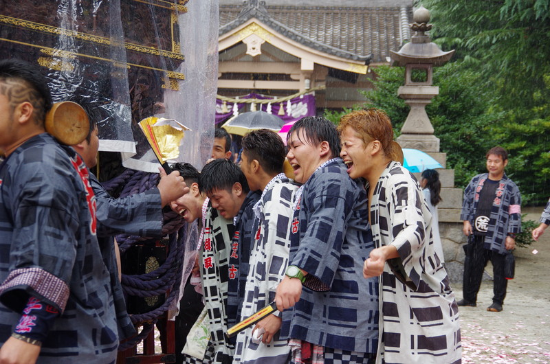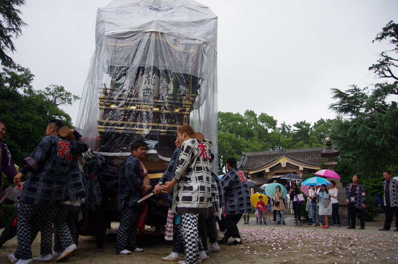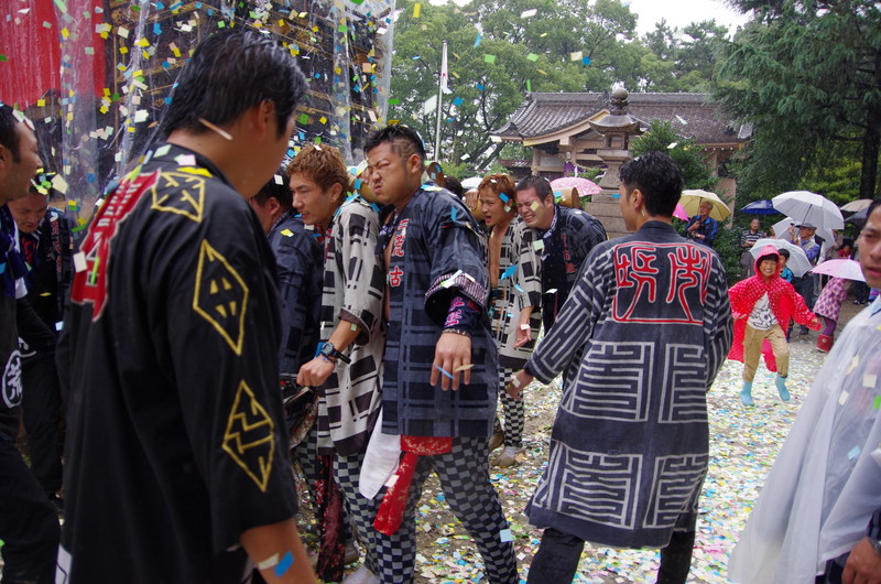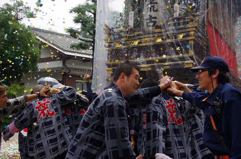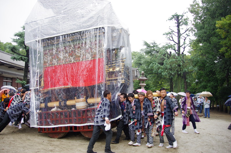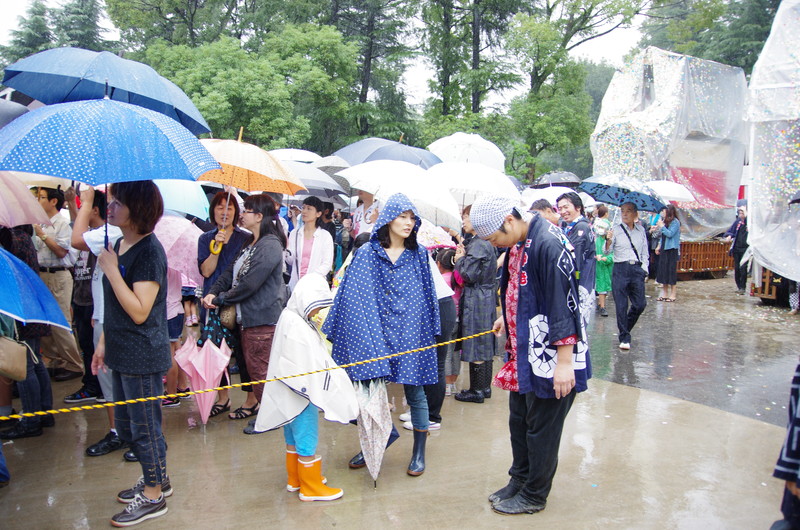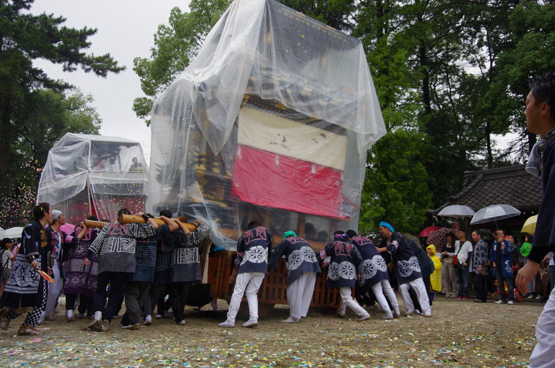 中老さんたちの担ぎ。 雨とビラですごいことに・・。