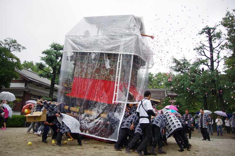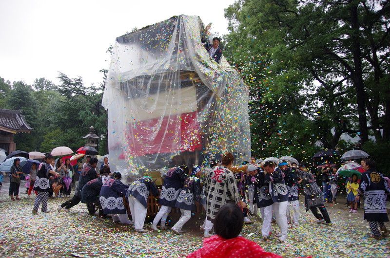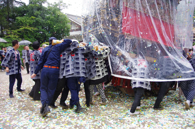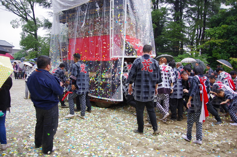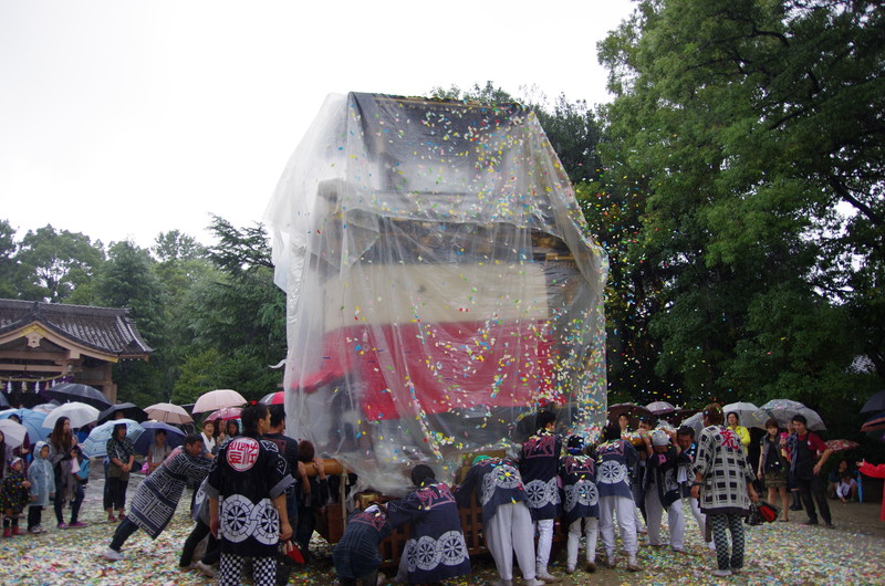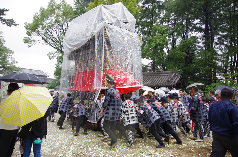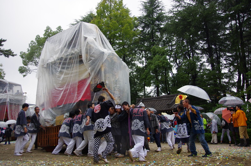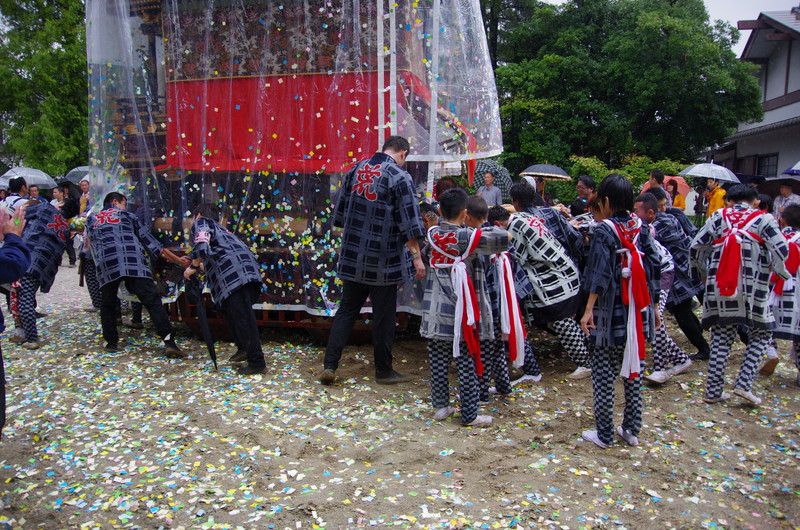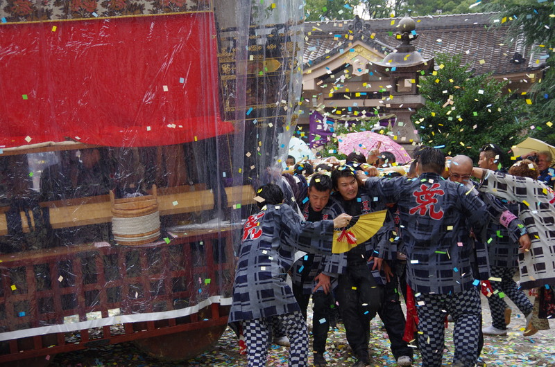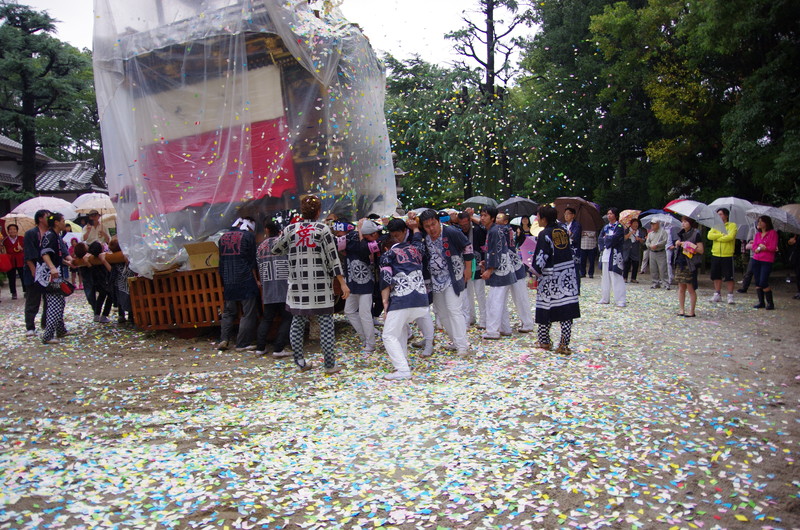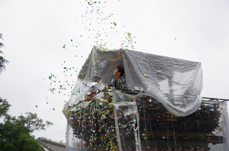 持ち投げは 形だけで 餅は山車蔵で配布。