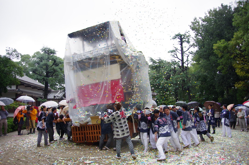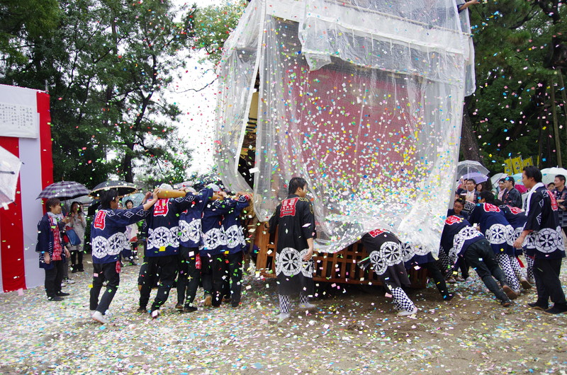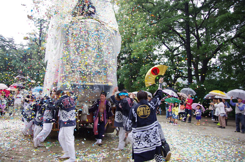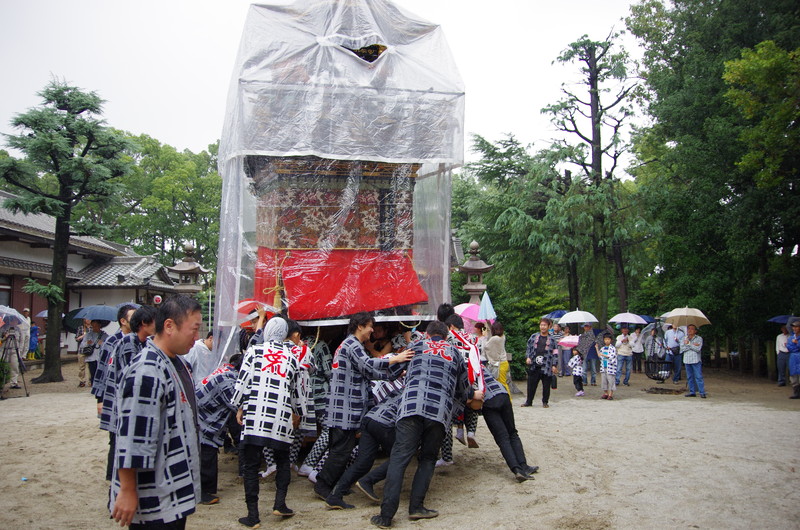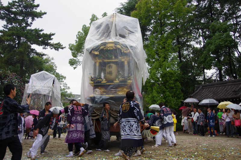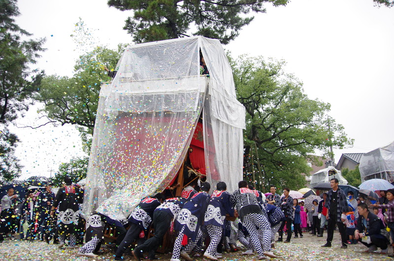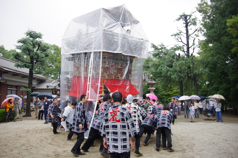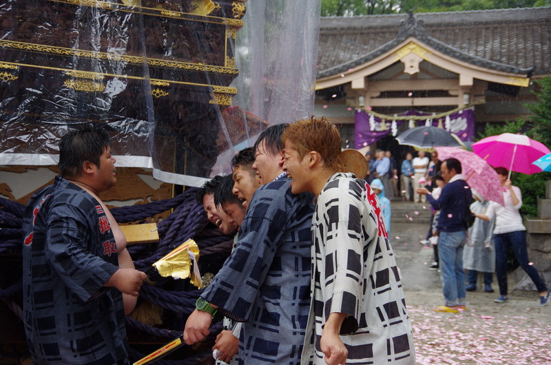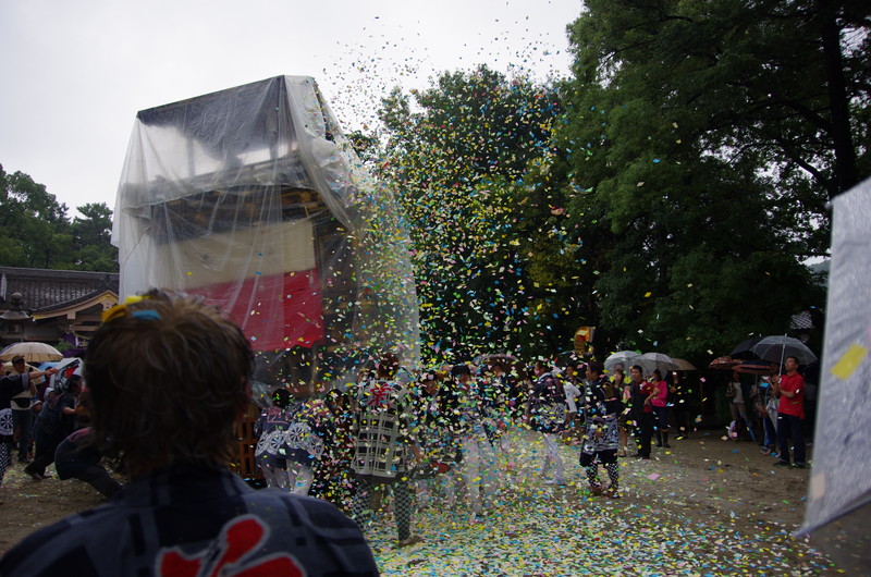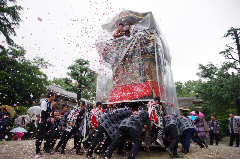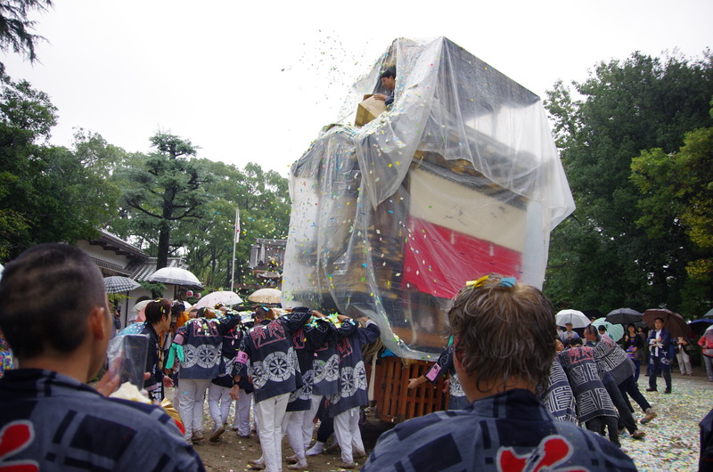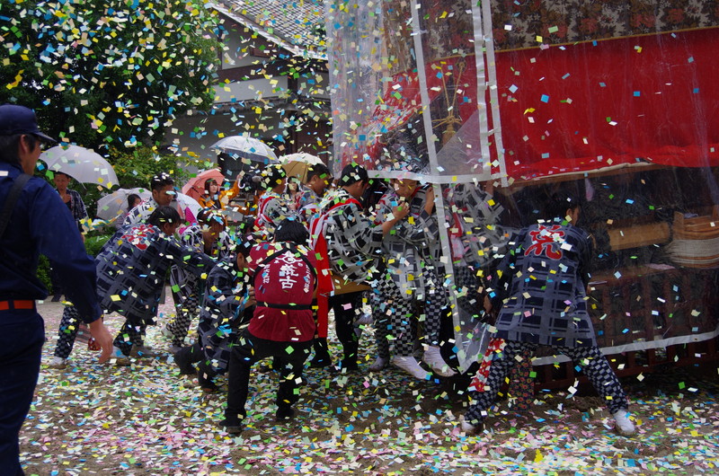 持ち投げは 形だけで 餅は山車蔵で配布。