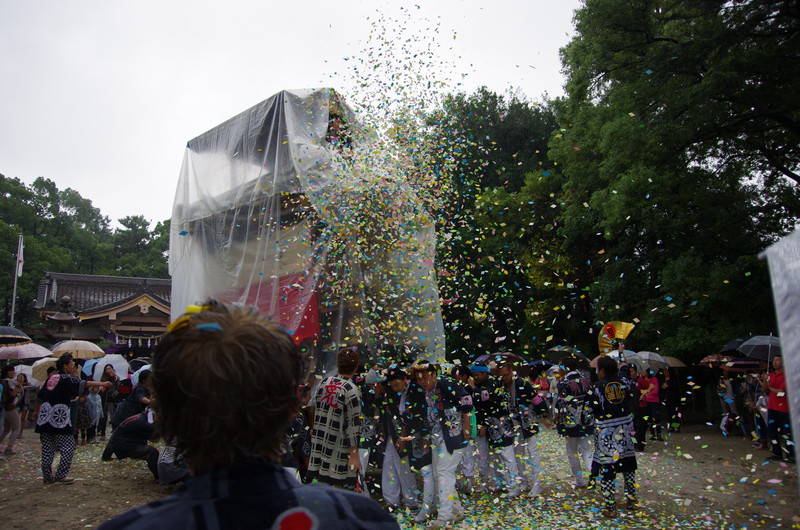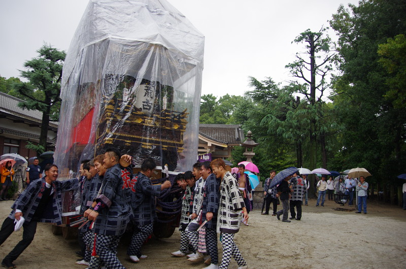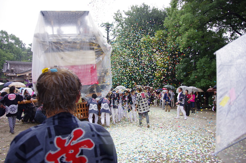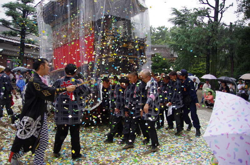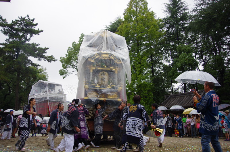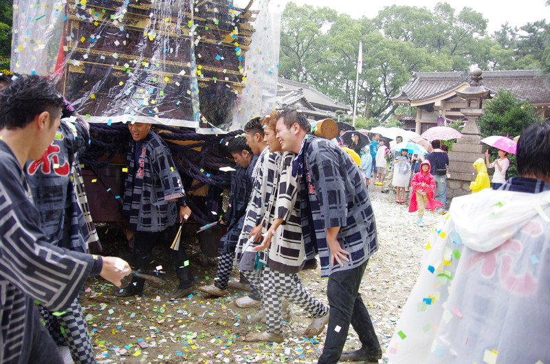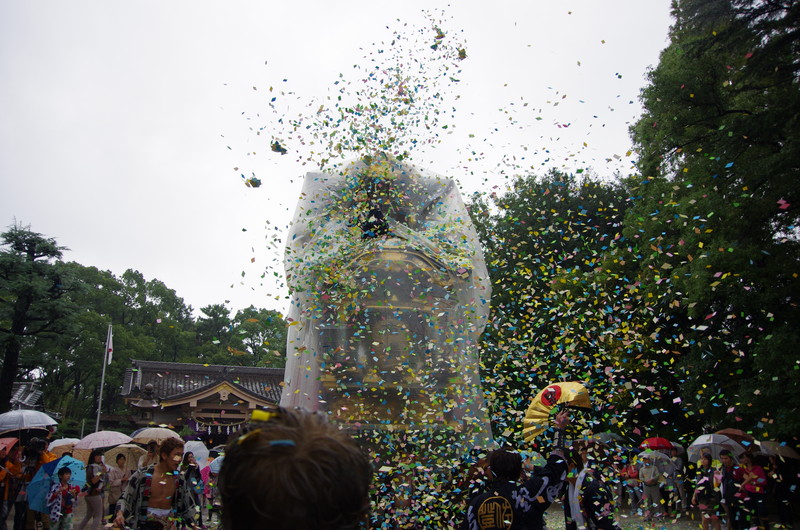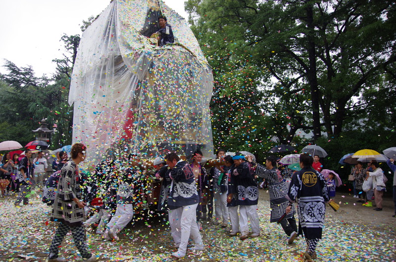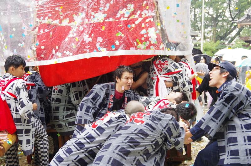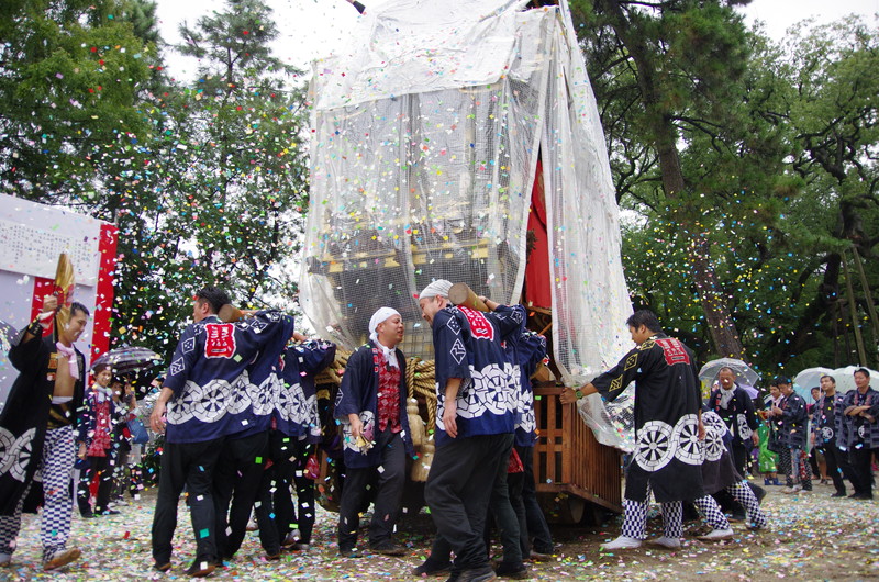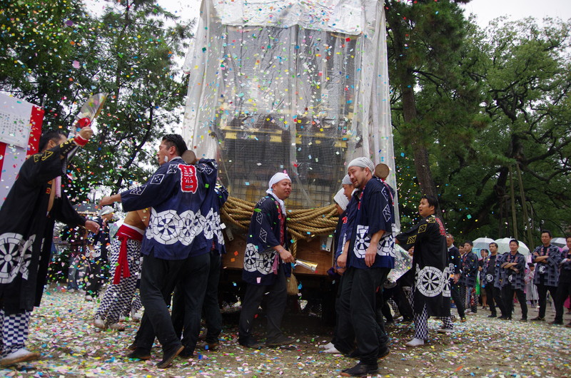 持ち投げは 形だけで 餅は山車蔵で配布。