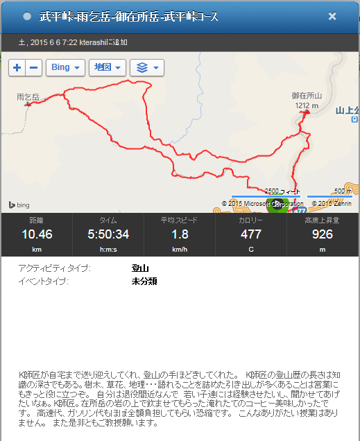 2015/06/06(土) 高校のときの同級生 半田のK師匠による登山入門編 実技講習でした。