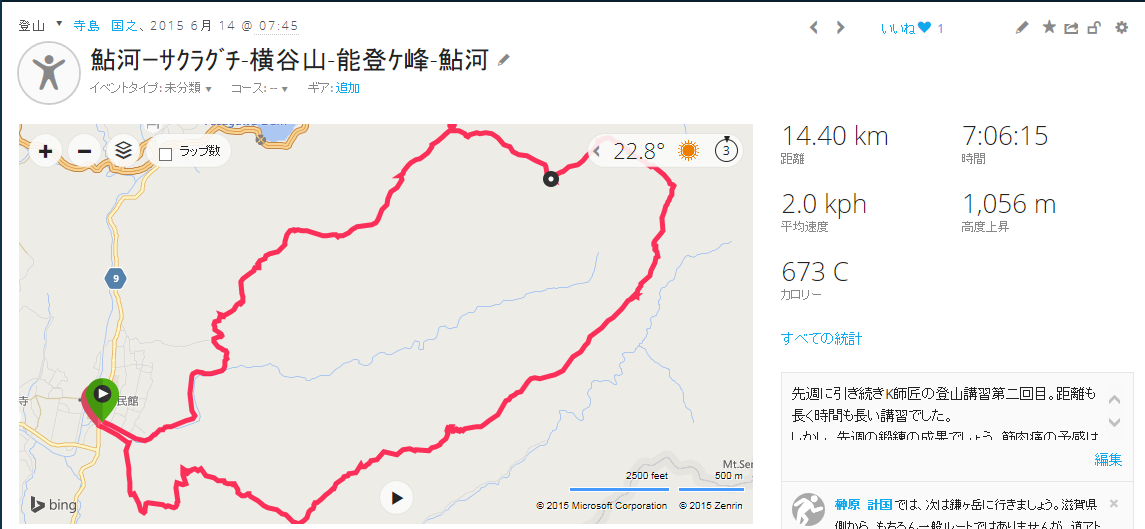 2015年6月14日 鮎河〜サクラグチ〜横谷山〜能登ケ峰〜鮎河