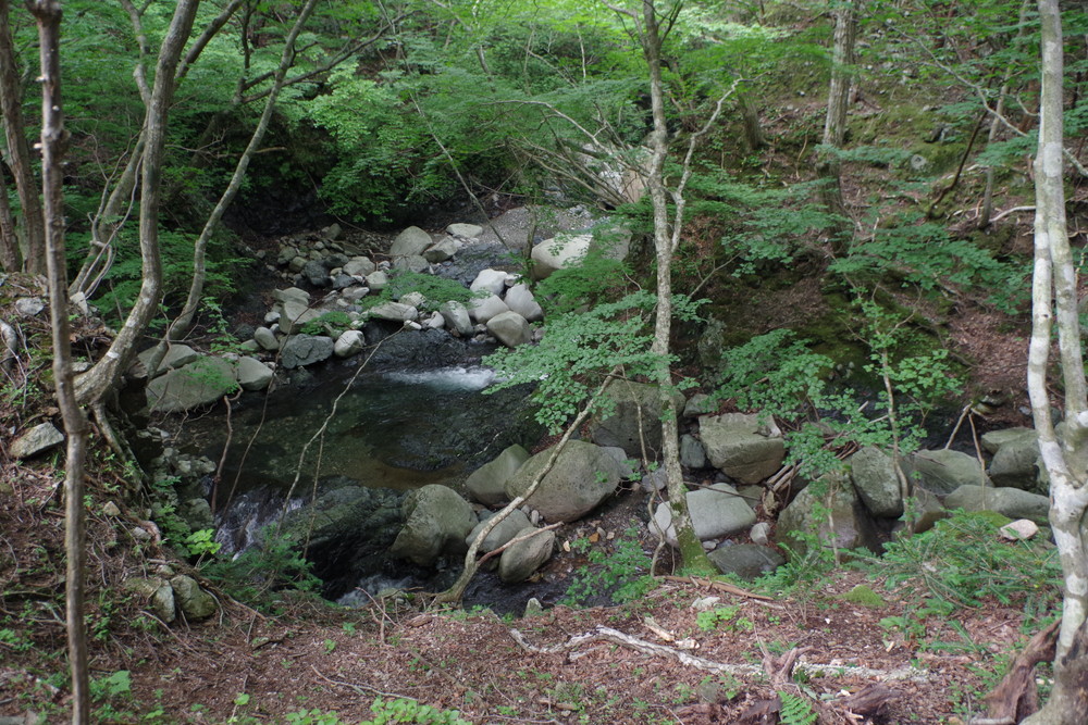 ツルベ谷出会まで下りてきました。