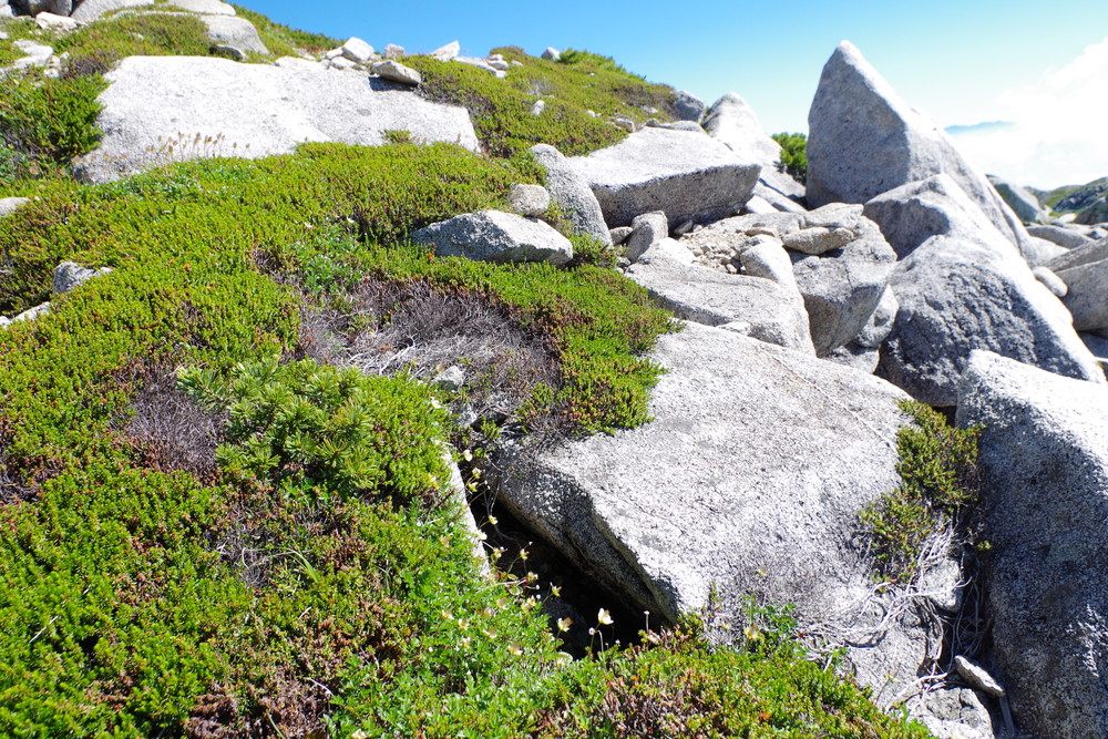 山頂ではおびただしい数の虫が移動していた。魚眼レンズで撮った写真。虫 わかりますか?