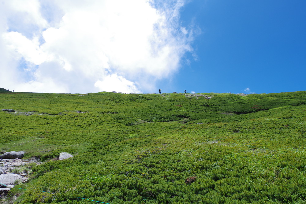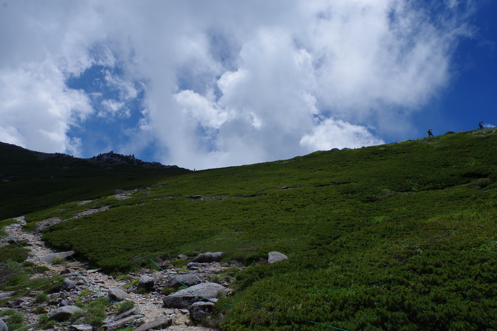 飼駒の池を出発し 昼食の場である乗越浄土へ向かいます。