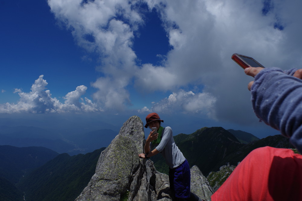 間違って降りた場所ですれ違い待ちの間 山ガールのお姉さんと写真撮り合いっこ。
