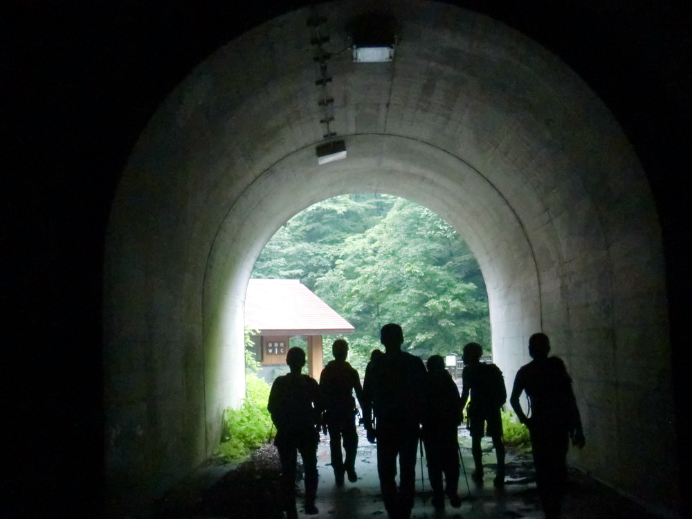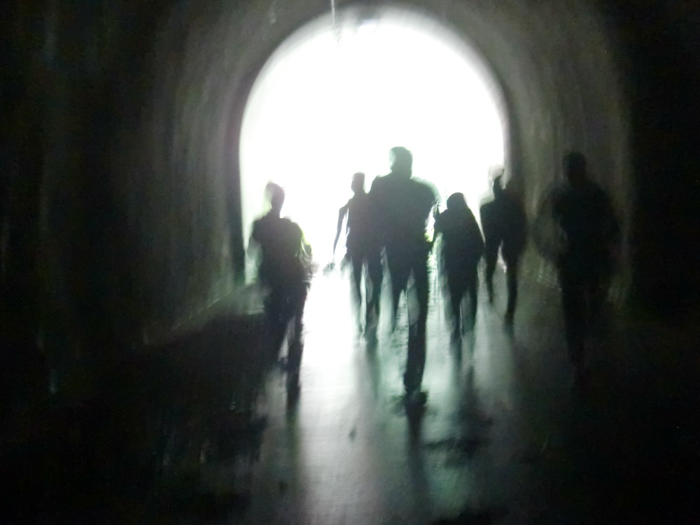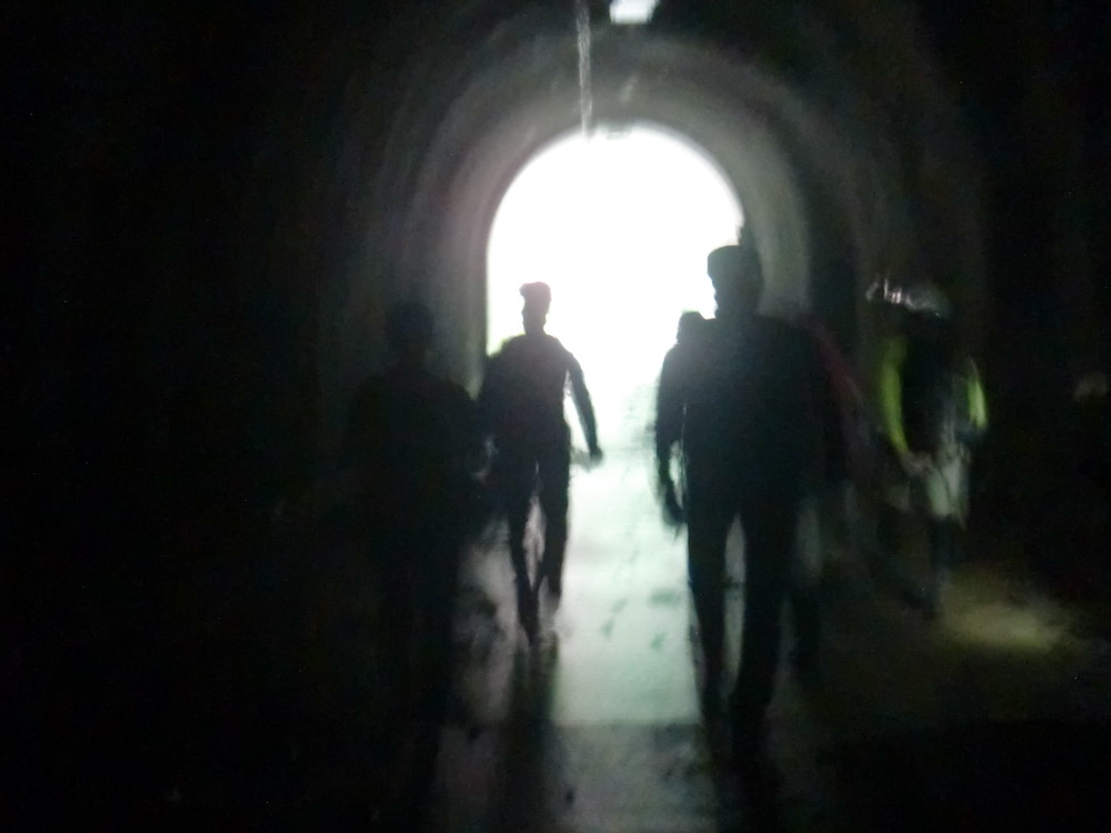 中は真っ暗 ちょっと進むと出口側の明かりが