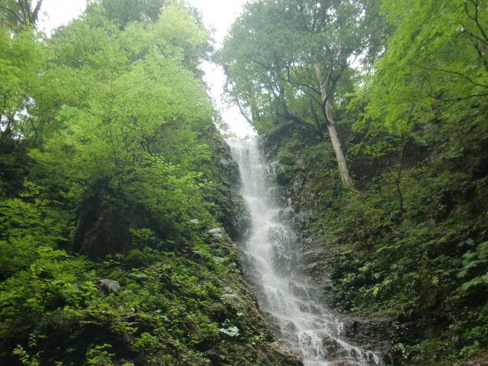 左手には 立派な滝が。