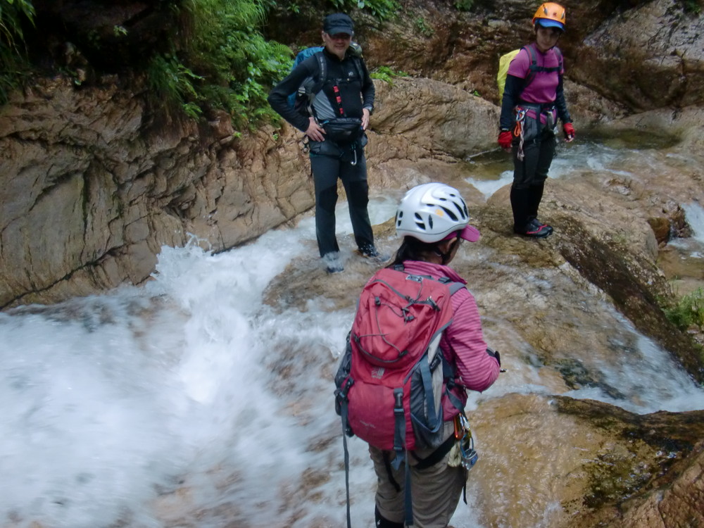 立派だけど役に立っていない建物の軒下に履き替えた靴を置いて いよいよ沢歩き。