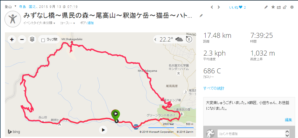 2015/09/13(日) 半田のK師匠、小田ちゃんとで山行。6:00に迎えに来てもらい 市役所で小田ちゃんピックアップ