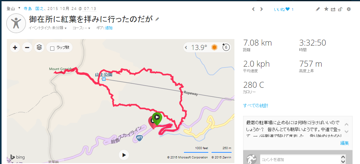 お手軽登山でした。だって翌日は名古屋アドベンチャーマラソンで 42.195km走るんですからこの程度で済ませないとね。