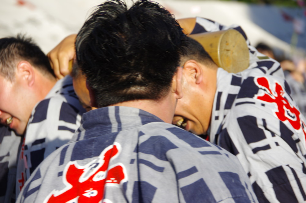 がんばる中老さん(後ろ楫)と組衆さん(前楫)