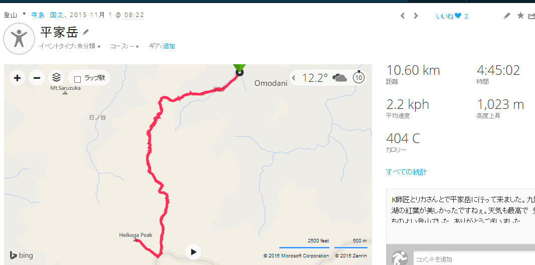 駐車地に帰還 751m 10.60km 4時間45分00秒です。