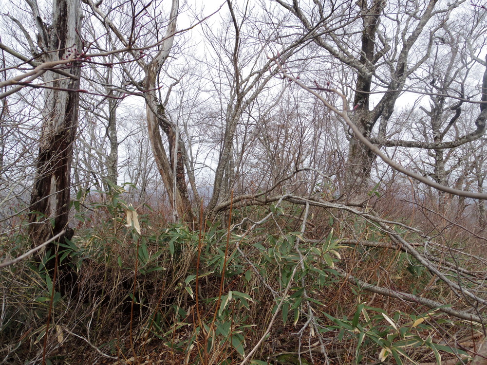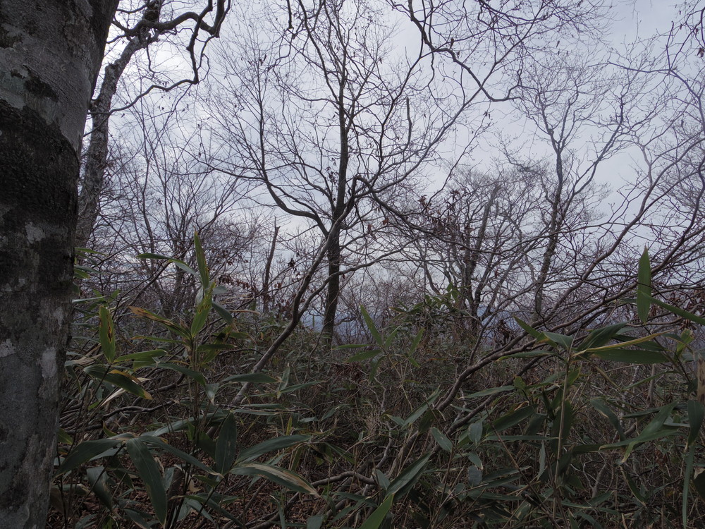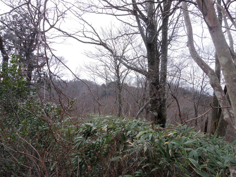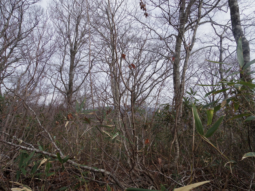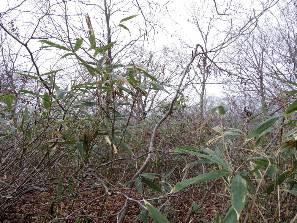 左門岳から北へ やぶ漕ぎして県境稜線に出て 東に折れて更にやぶ漕ぎ