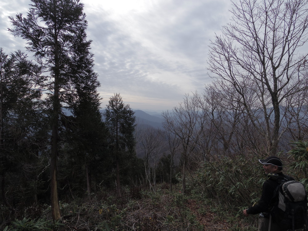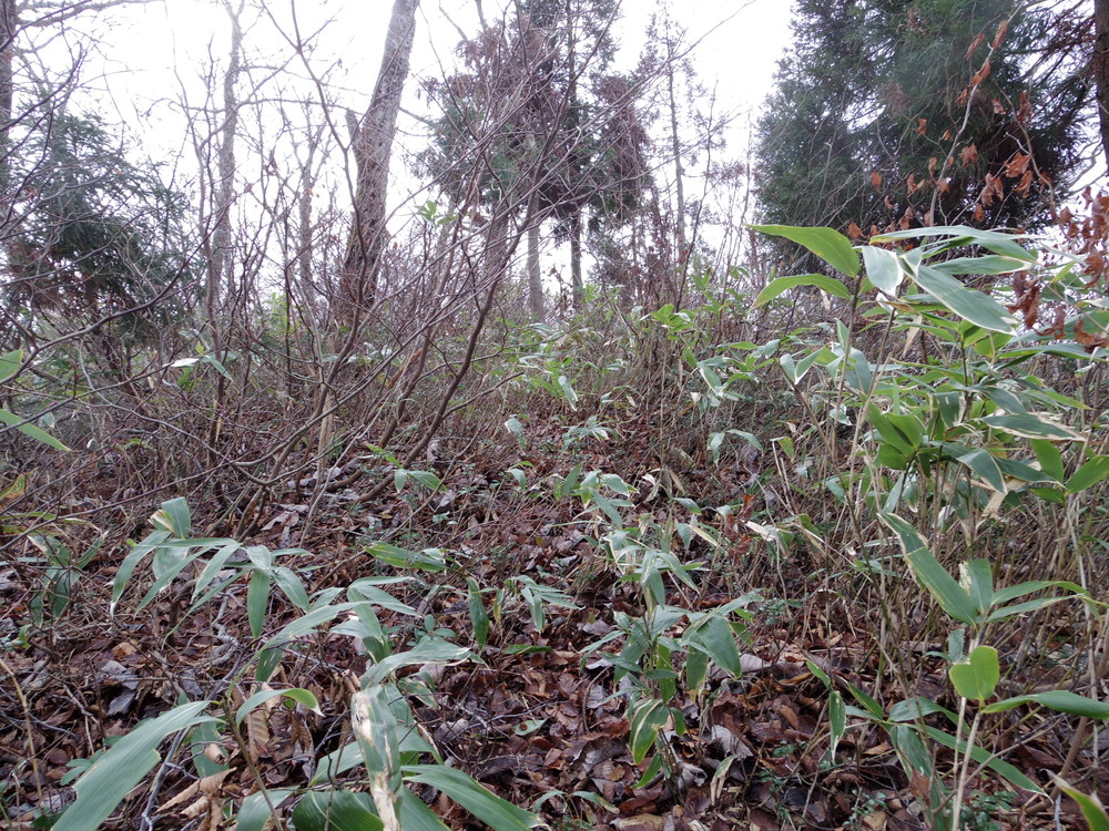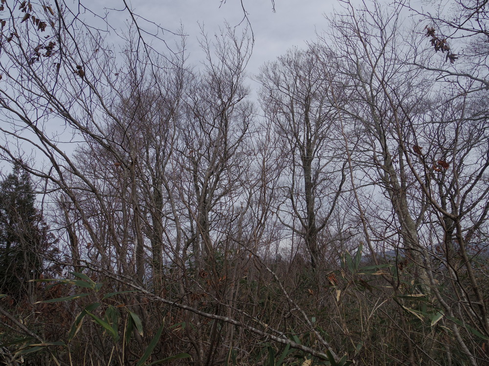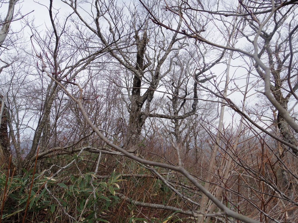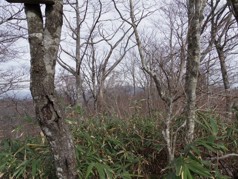 左門岳から北へ やぶ漕ぎして県境稜線に出て 東に折れて更にやぶ漕ぎ