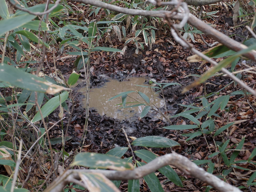 ヌタ場。 時々目にした薄っすらとした踏み後は獣道だったのか?