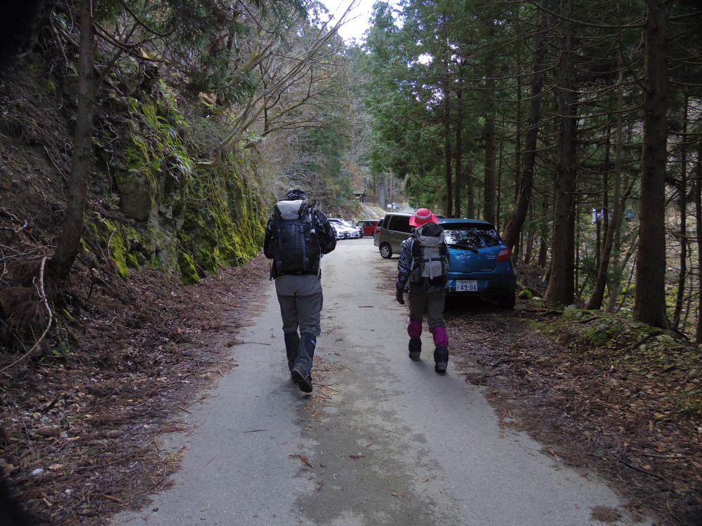榑ケ畑登山口駐車場は満車につき ちょっと手前に駐車して出発準備
