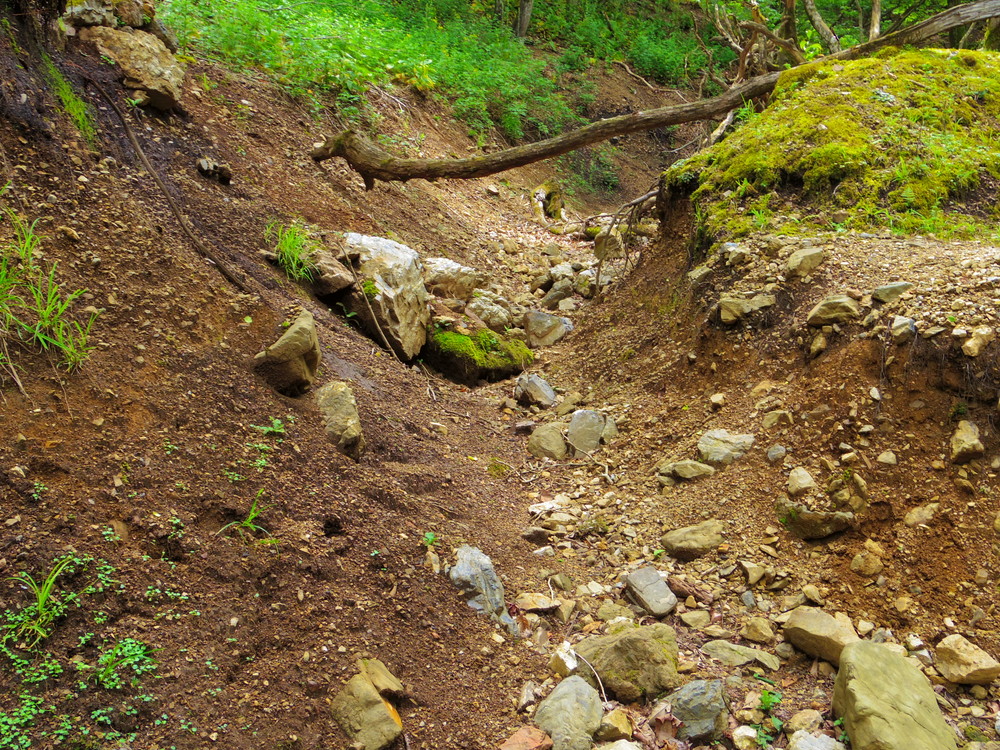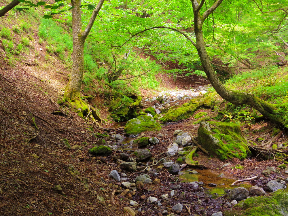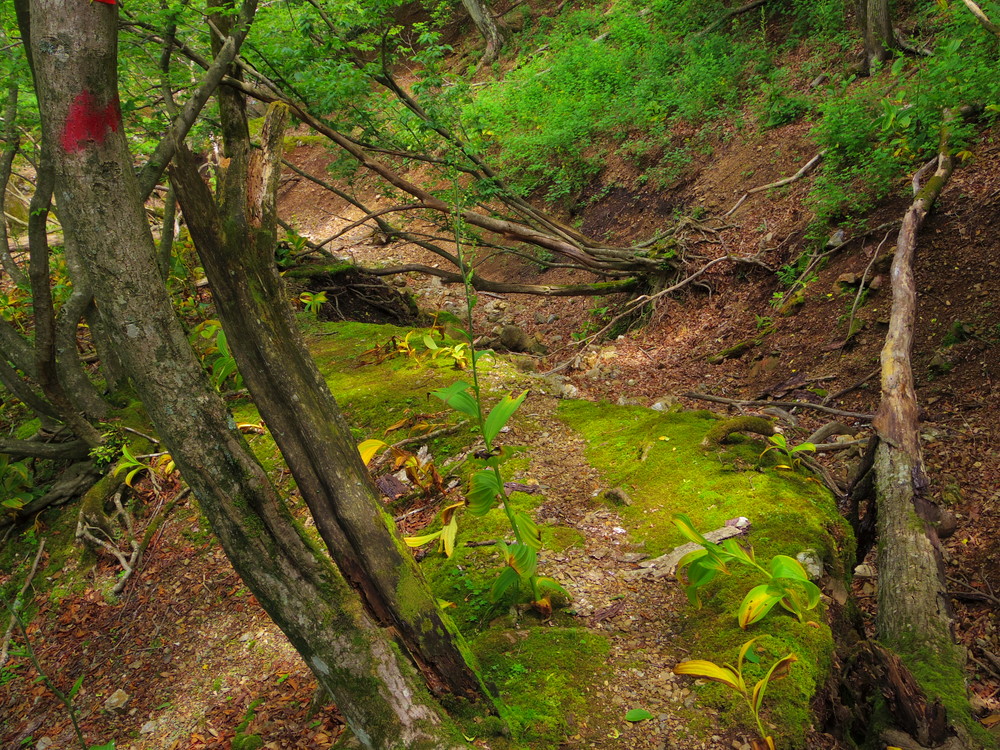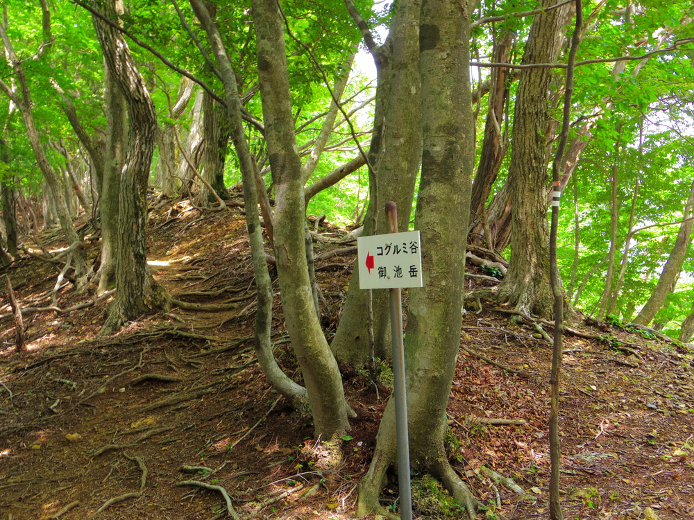 で真の谷に降りた。 確かにこの看板は5/29に見た。 これを見た後も南東に進んでいったっけ。