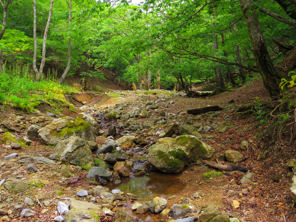 谷をずーっと歩いてたんですが 歩きにくいし踏み跡もイマイチなんで 稜線に出て歩きました。