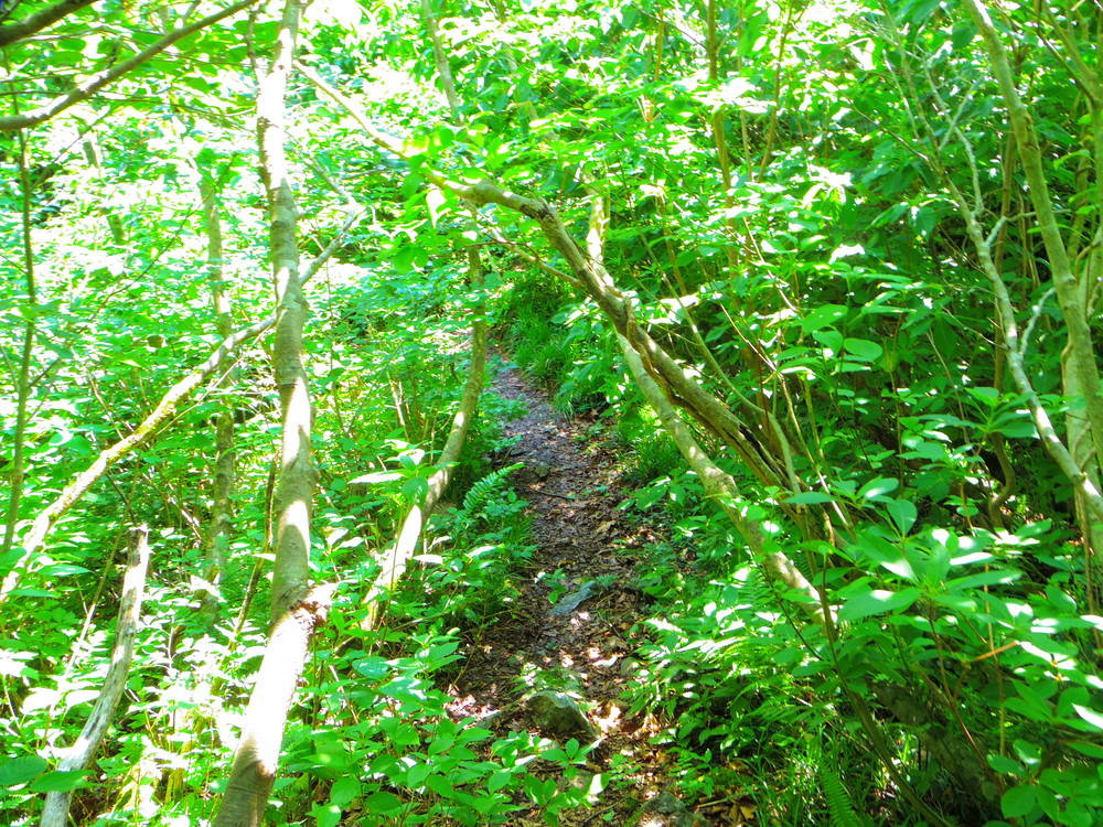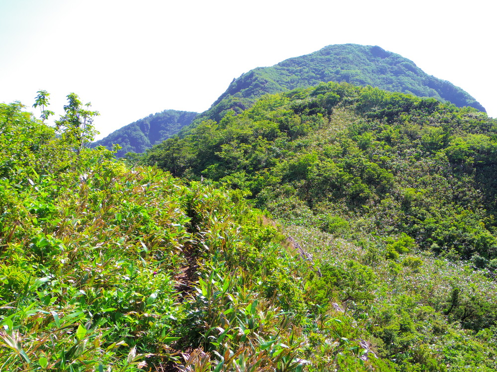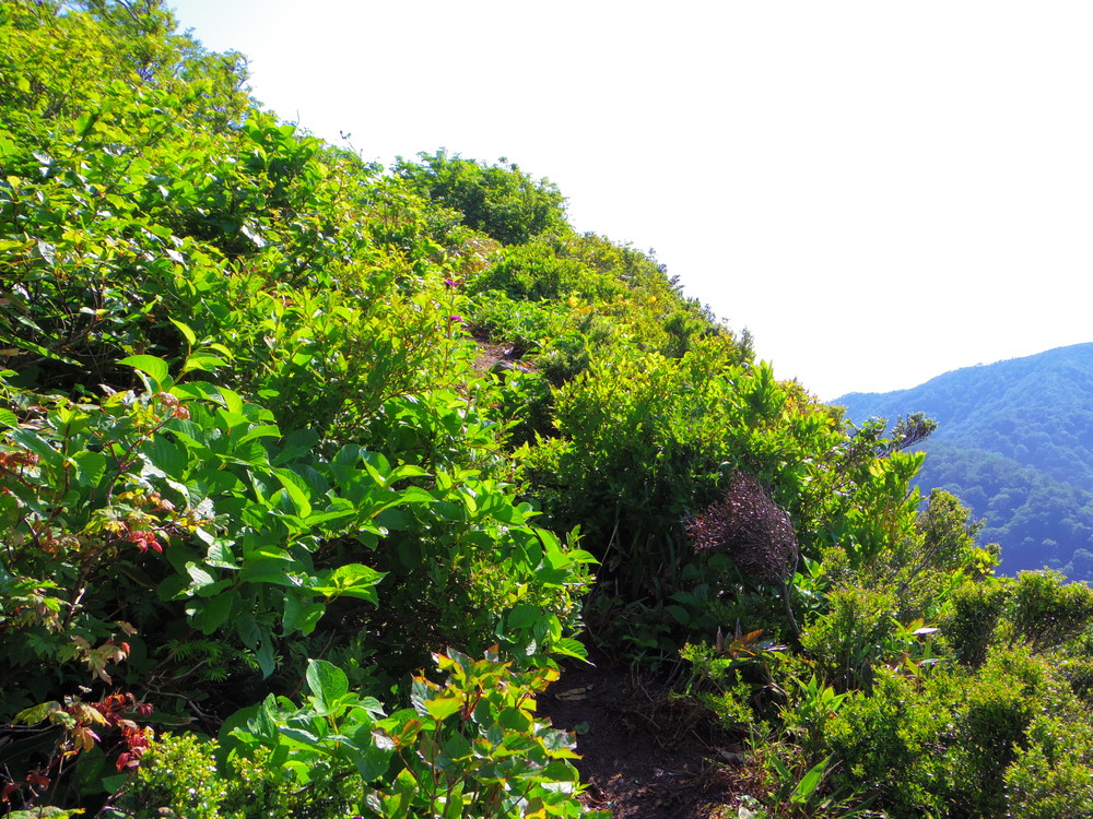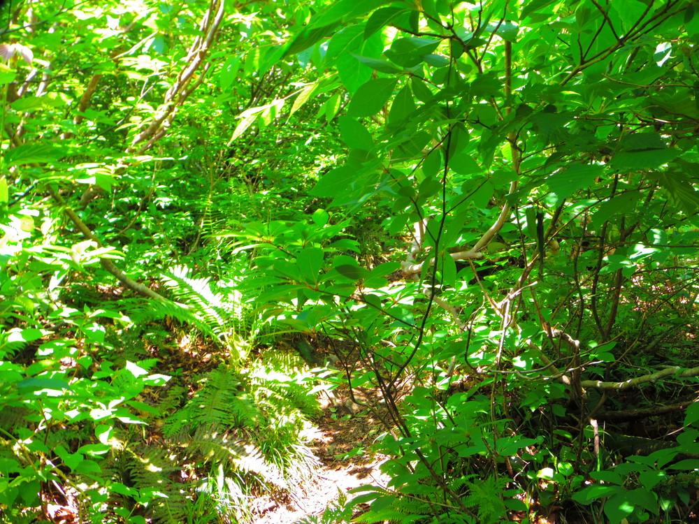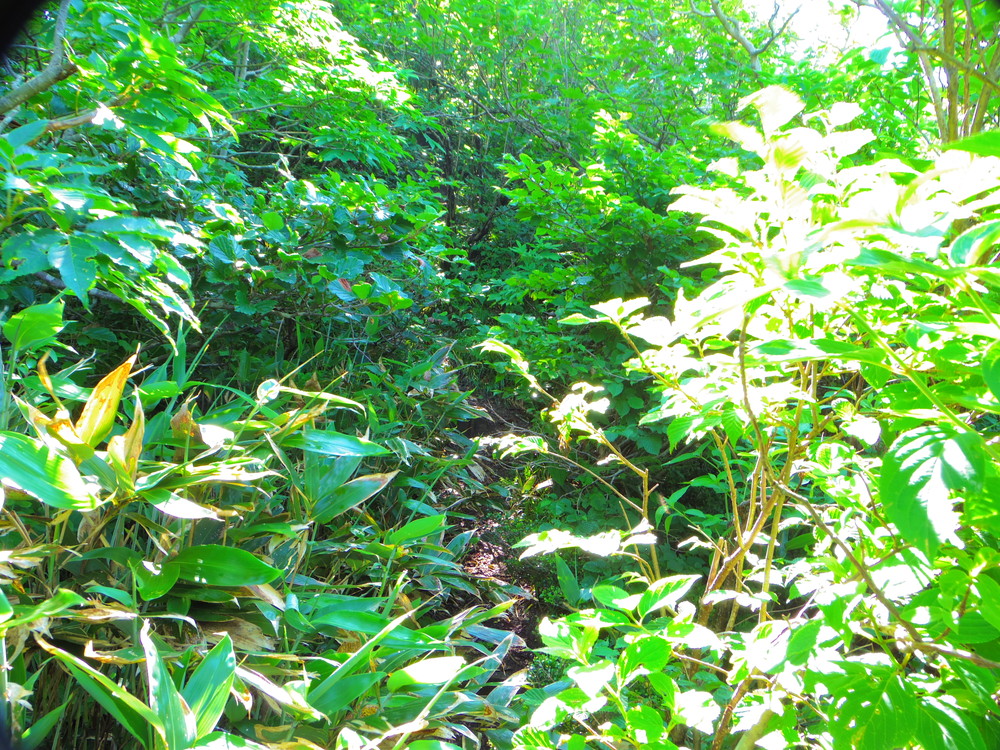 想定外のヤブ漕ぎ。ヤブで擦れてかゆくなるのが嫌だったのでウィンドブレーカーを着て、時にはフードまでかぶって歩いてました。