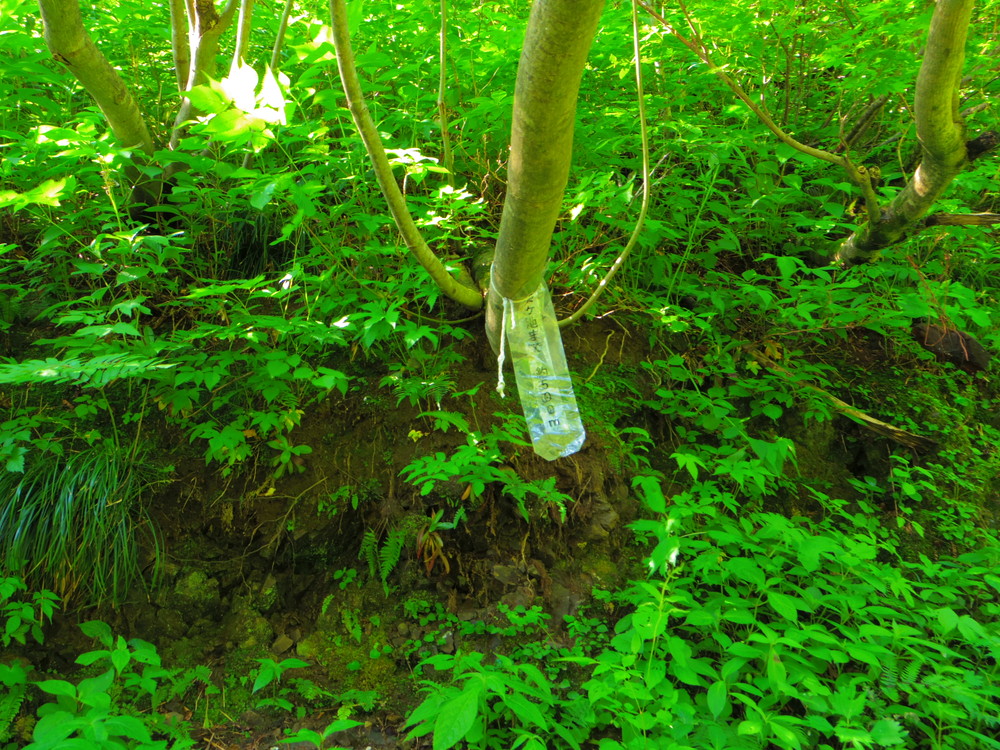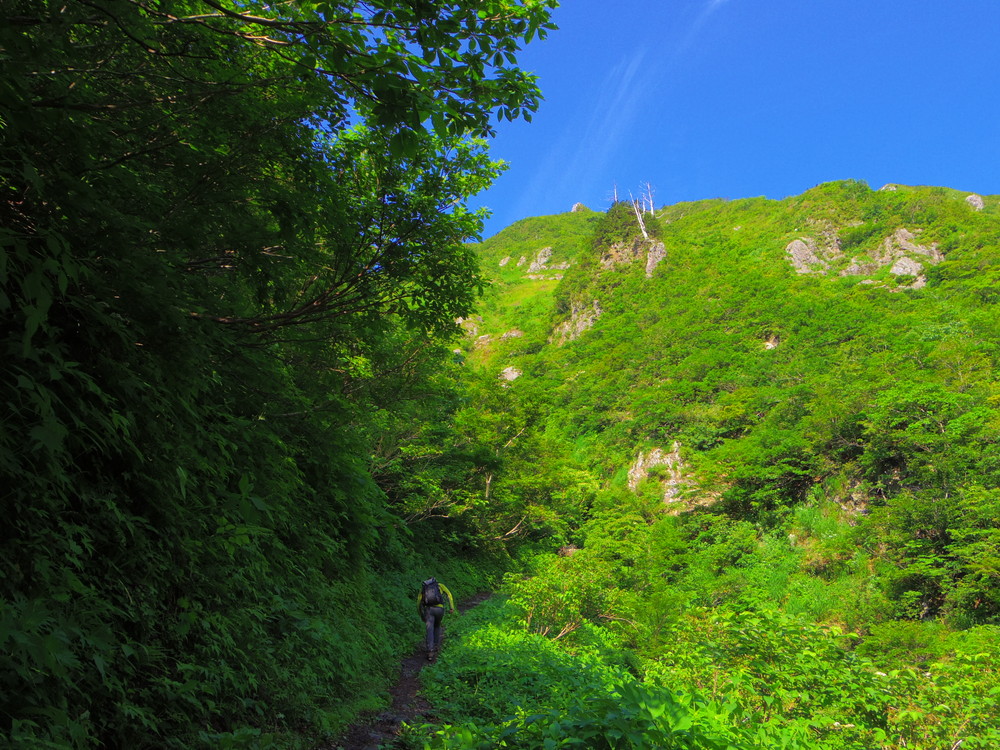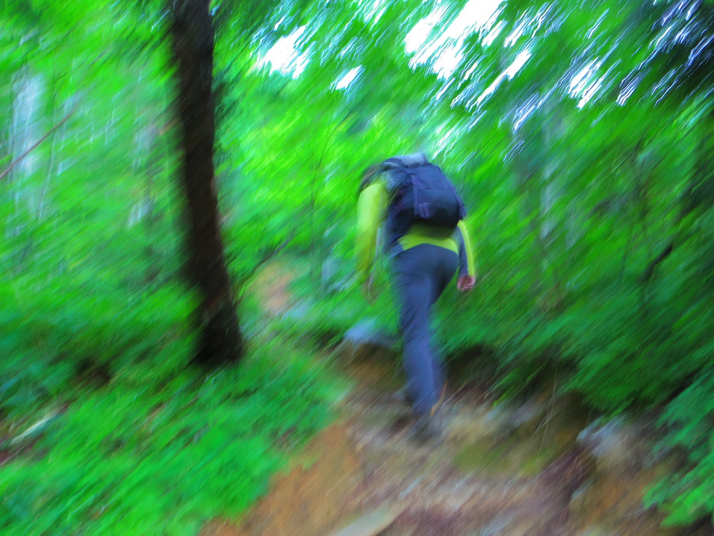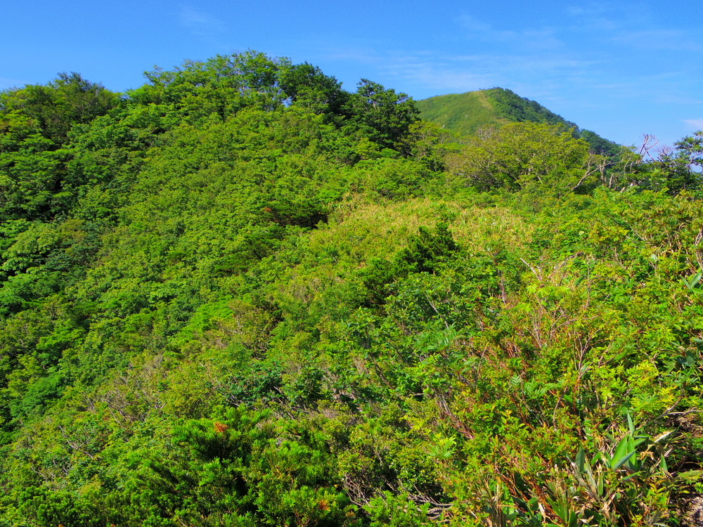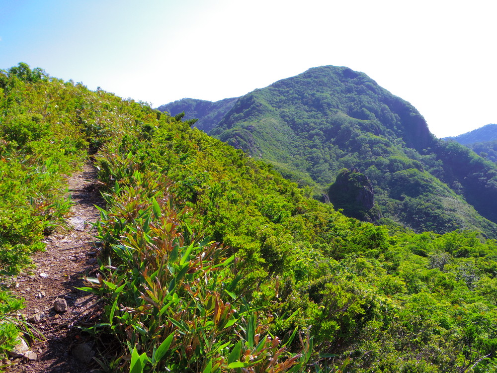想定外のヤブ漕ぎ。ヤブで擦れてかゆくなるのが嫌だったのでウィンドブレーカーを着て、時にはフードまでかぶって歩いてました。