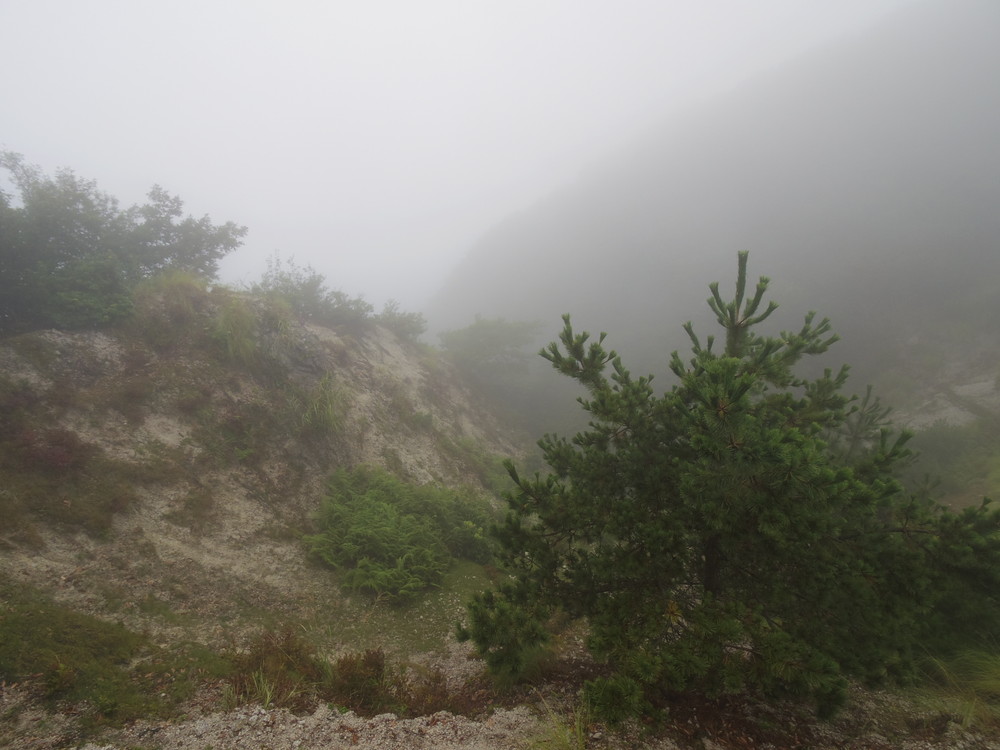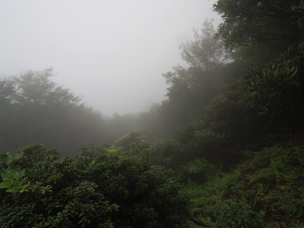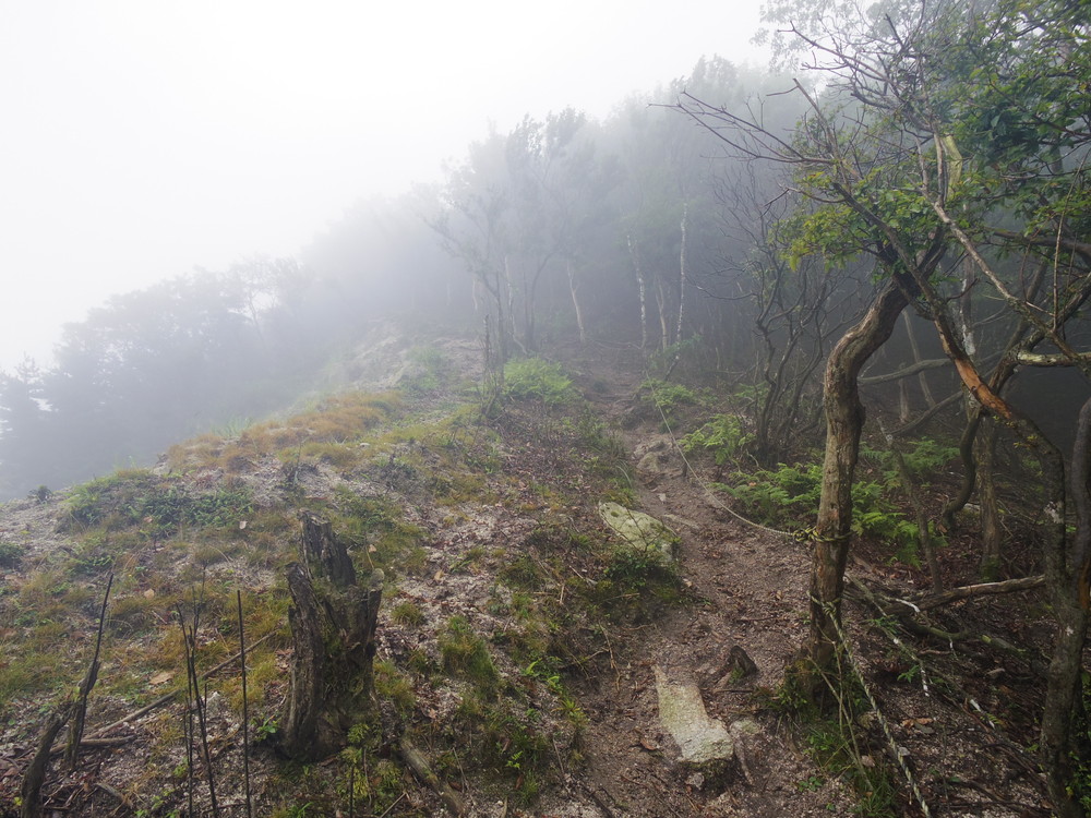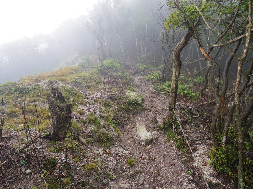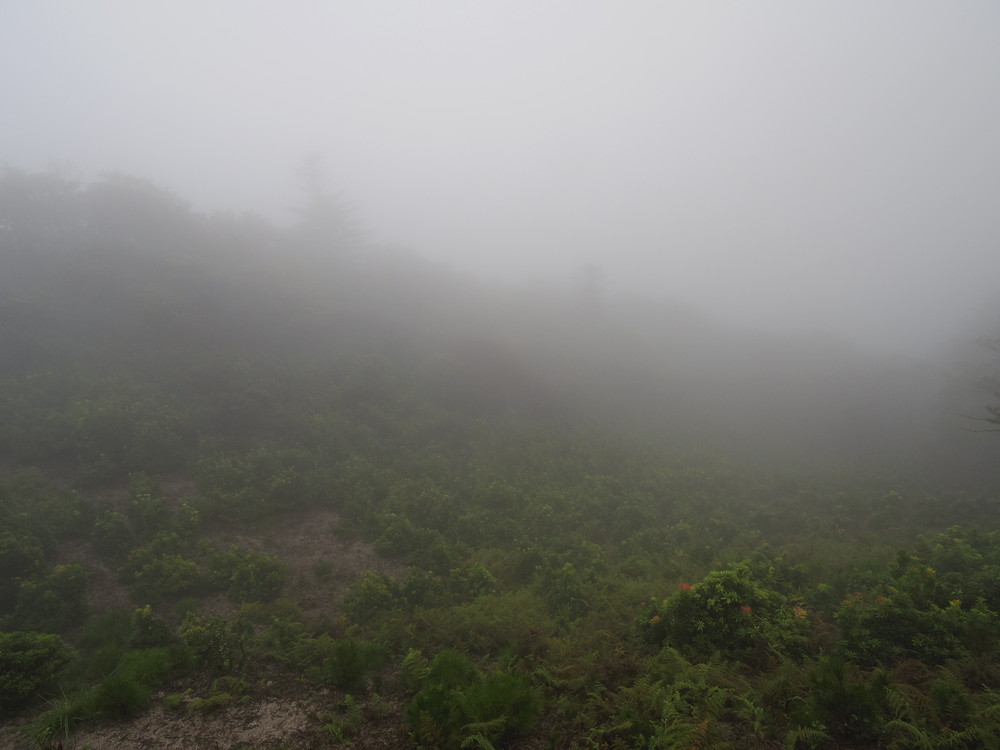 往路はガスっていて眺望ゼロ。おまけに道迷い(悲)。